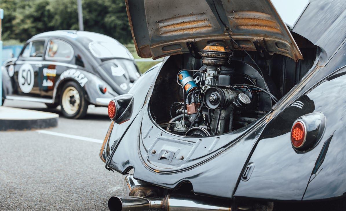 with the Type1 and Type3 but also has a lot of Type34-specific parts, and as the vehicle was only produced between 1962 and 1969 you can imagine that those parts are hard to find. After cleaning out the carbs, replacing spark plugs and leads, etc., the motor was running for the first time in around 40 years but was still spitting out dust and leaves. Even when they drove the car to Ninove this March, the heaters had only just been connected and the same leaves and bits of crispy insects came flying out of the vents. Many hours/days were spent trying to work out various running issues, even after parking the car up next to Ian Clark’s Beetle and swapping everything electrical and fuel related. They even fitted a race fuel tank to see if it was contaminated fuel, only for them to discover it was a bent half shaft in the gearbox.