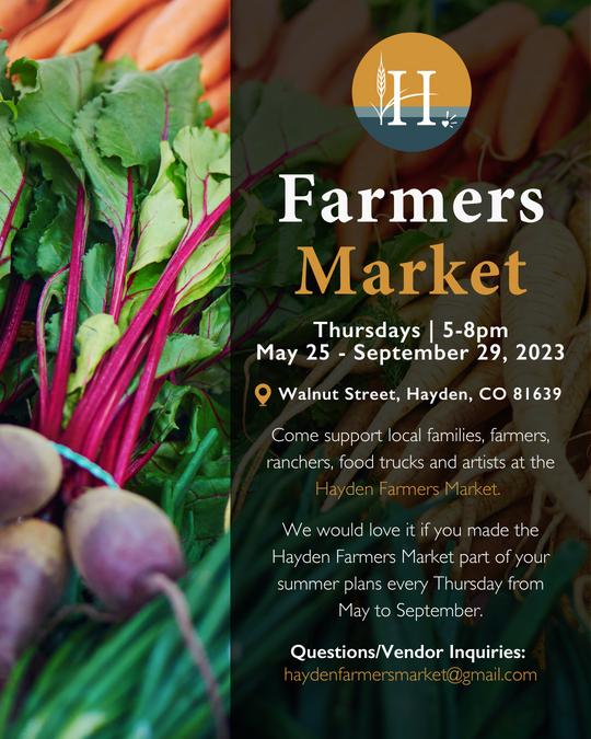 Back for its fourth year, the Hayden Farmers Market will return once again this May. You can support your local businesses and stock your fridge every Thursday at 100 S. Walnut.