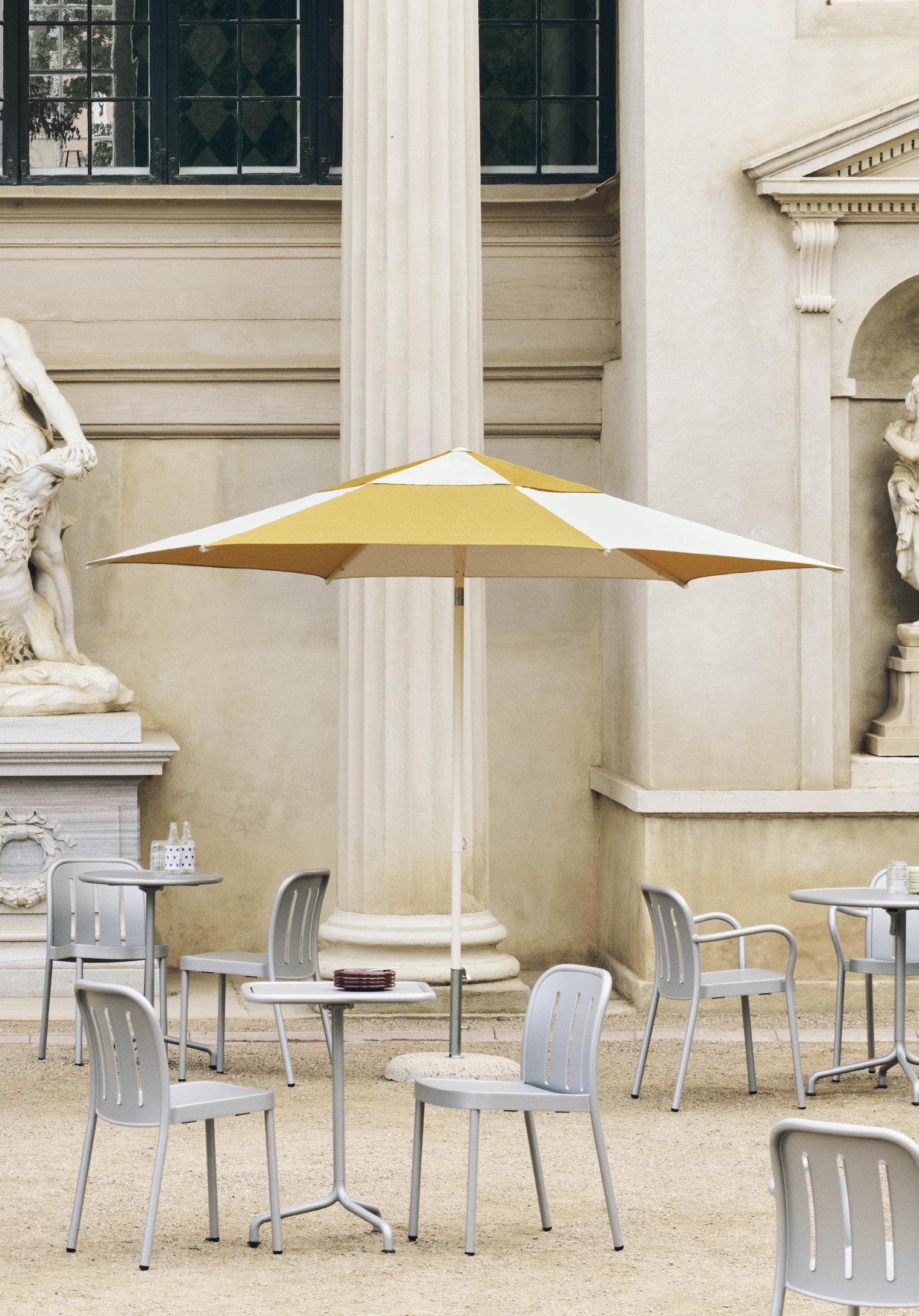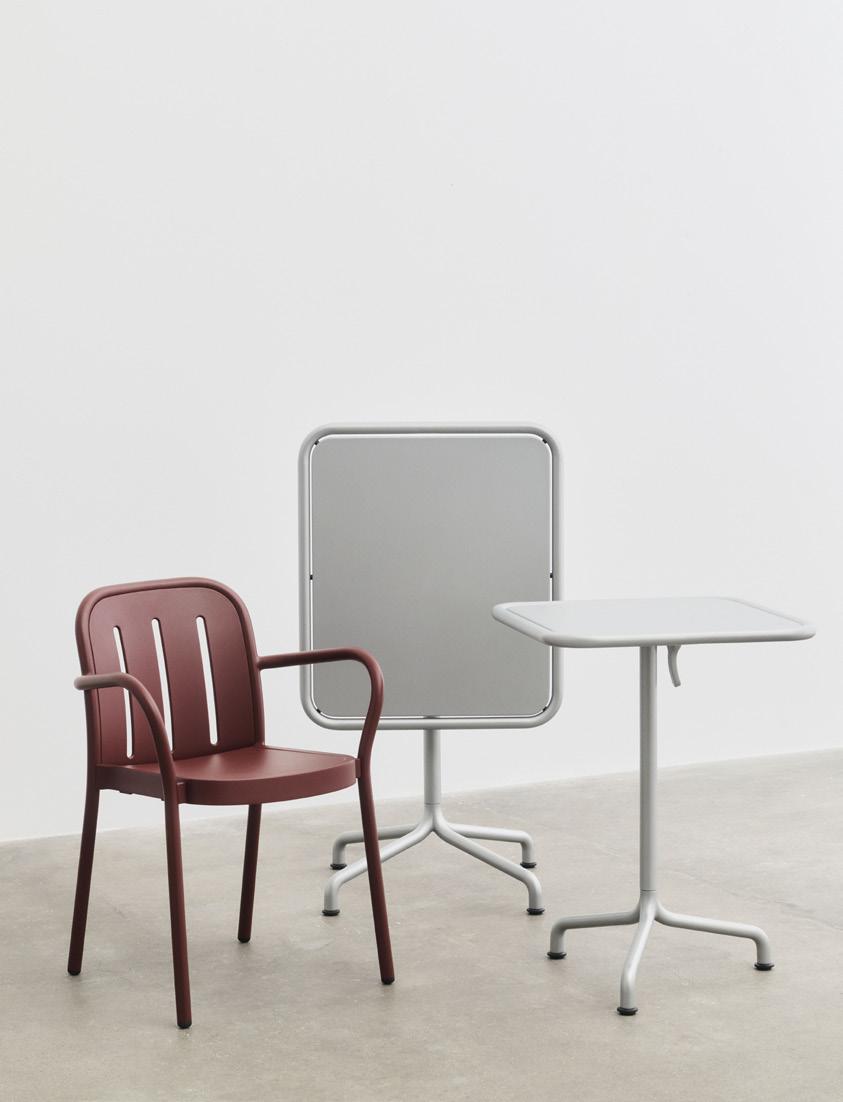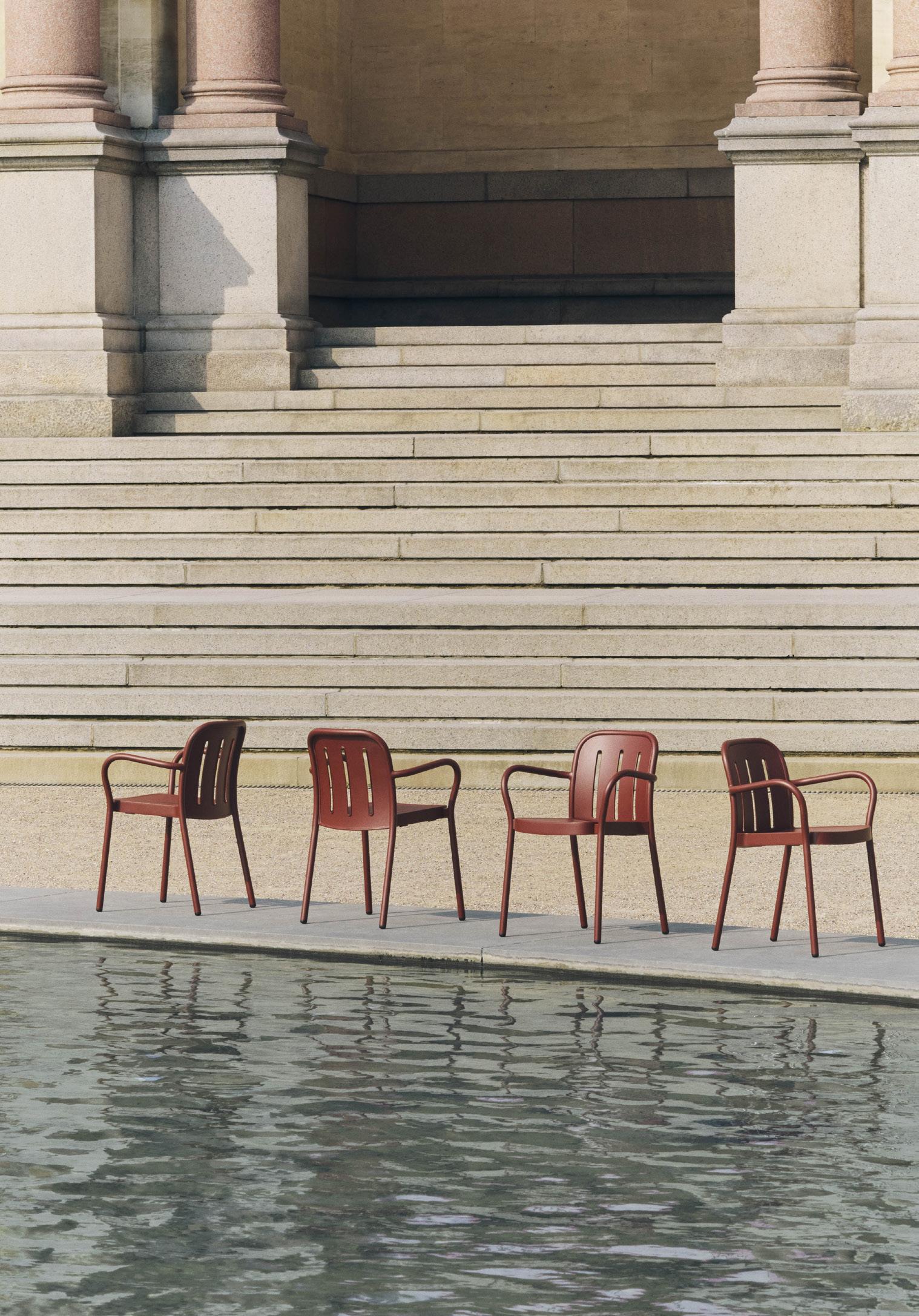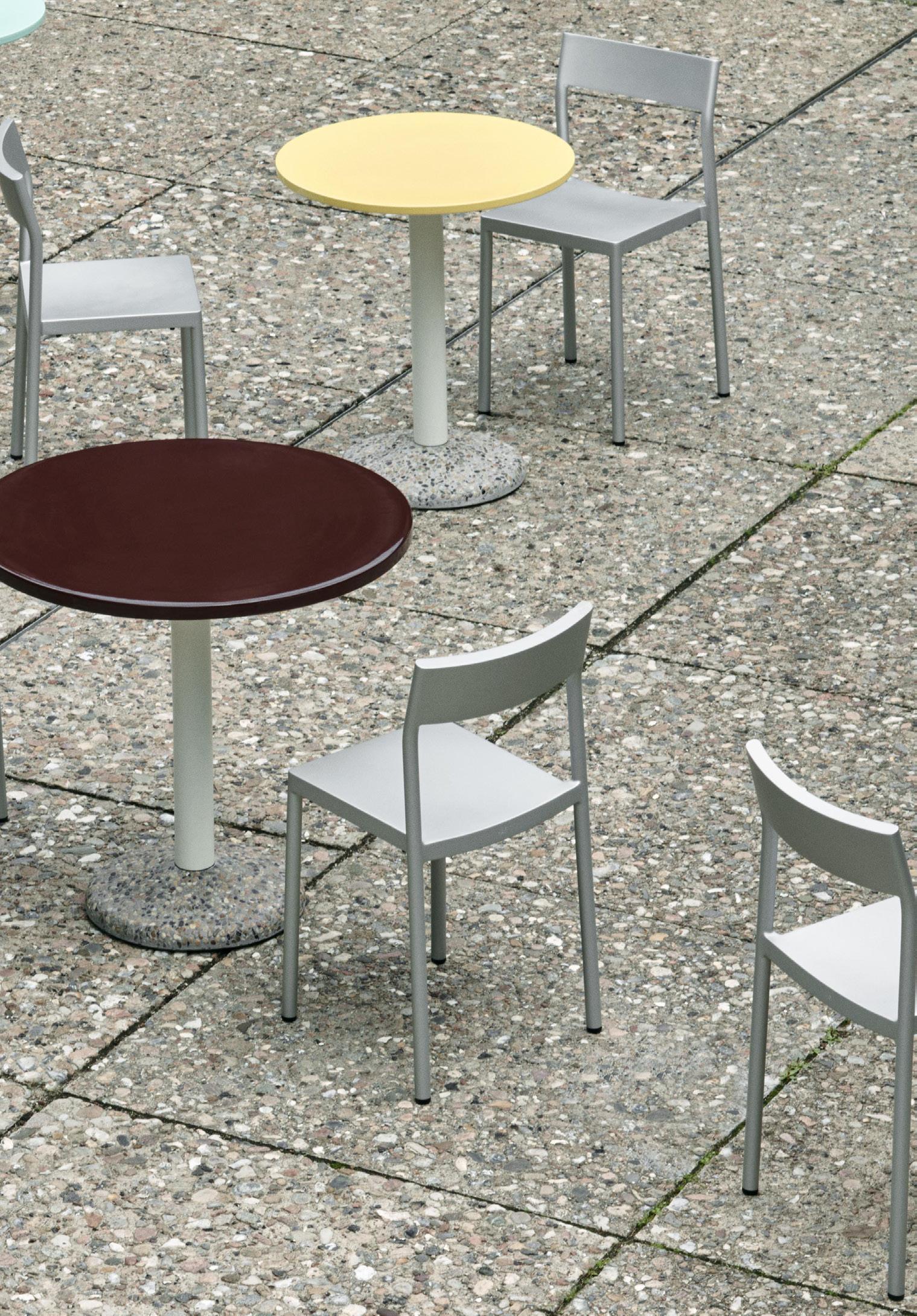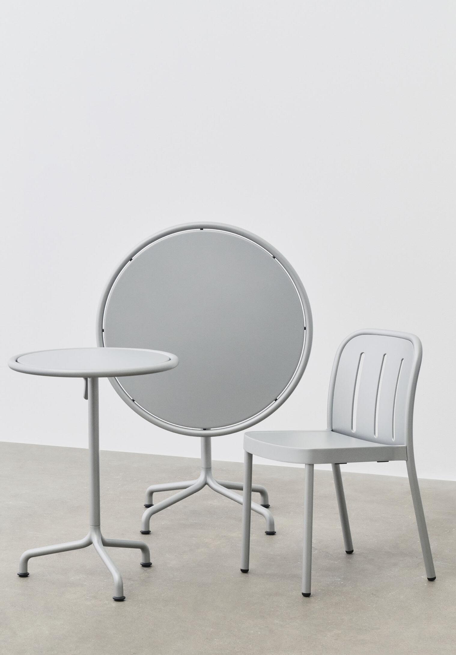 Julien Renault’s Deville Collection offers a contemporary take on the archetypal bistro set, reinterpreting a classic typology that naturally blends the charm of familiarity with industrial strength. Inspired by furniture from a favourite café in Brussels, Renault translates its spirit through generous proportions, softly curved frames, and lightweight aluminium construction. The result is a collection of outdoor tables and chairs that feels both practical and quietly nostalgic, built to last while remaining easy to move and arrange. By reimagining everyday bistro designs, Renault creates a range of timeless stackable chairs and tilt-top tables, bringing flexibility to a wide variety of outdoor environments.
