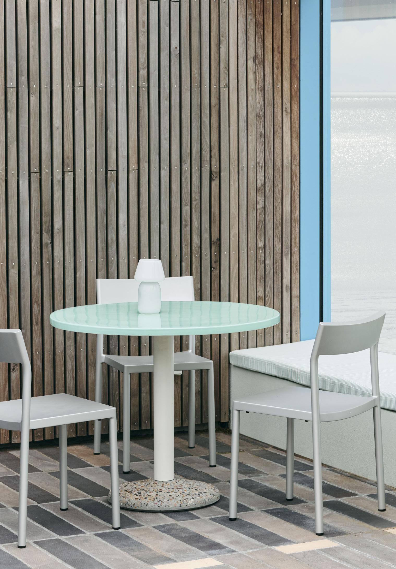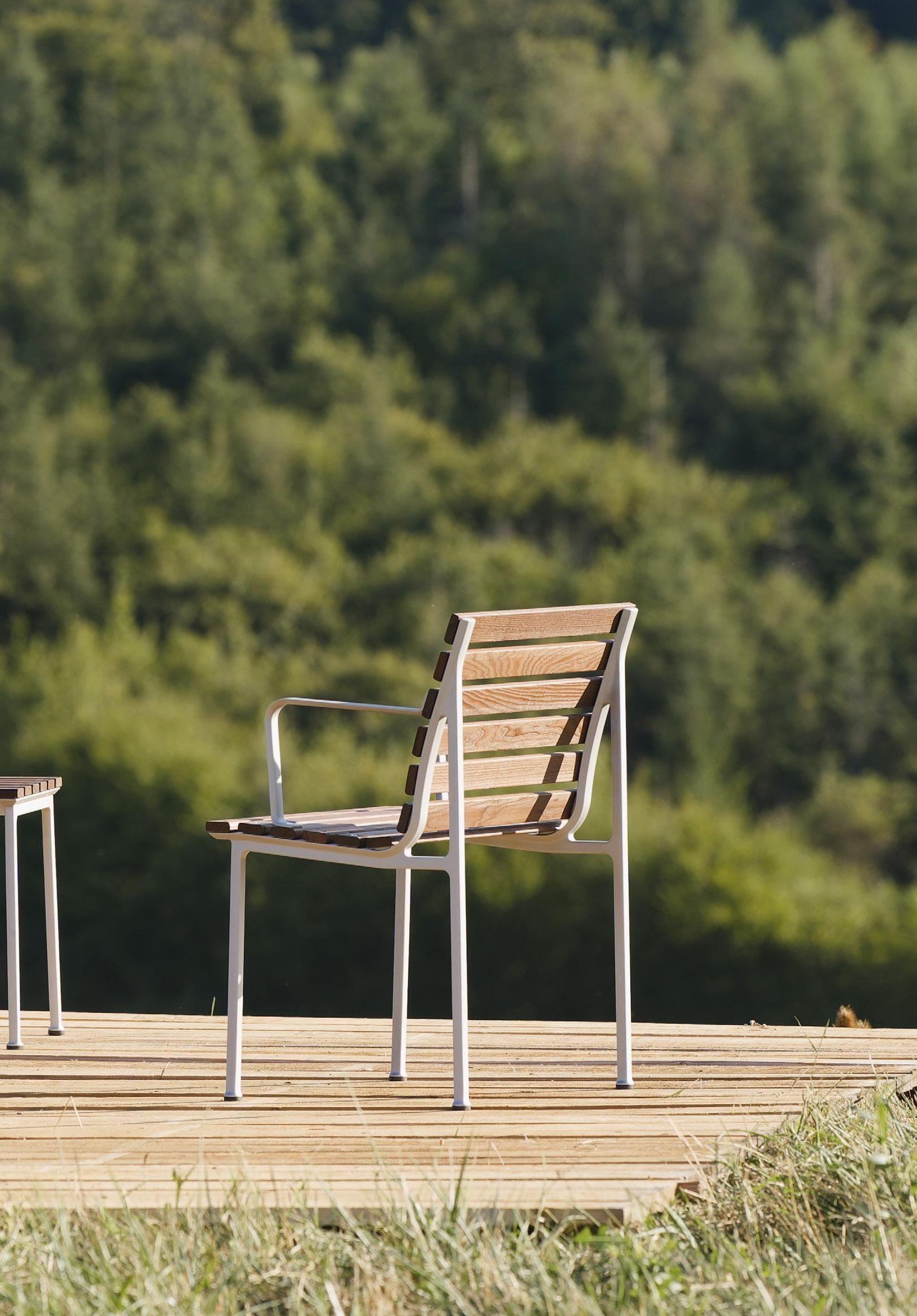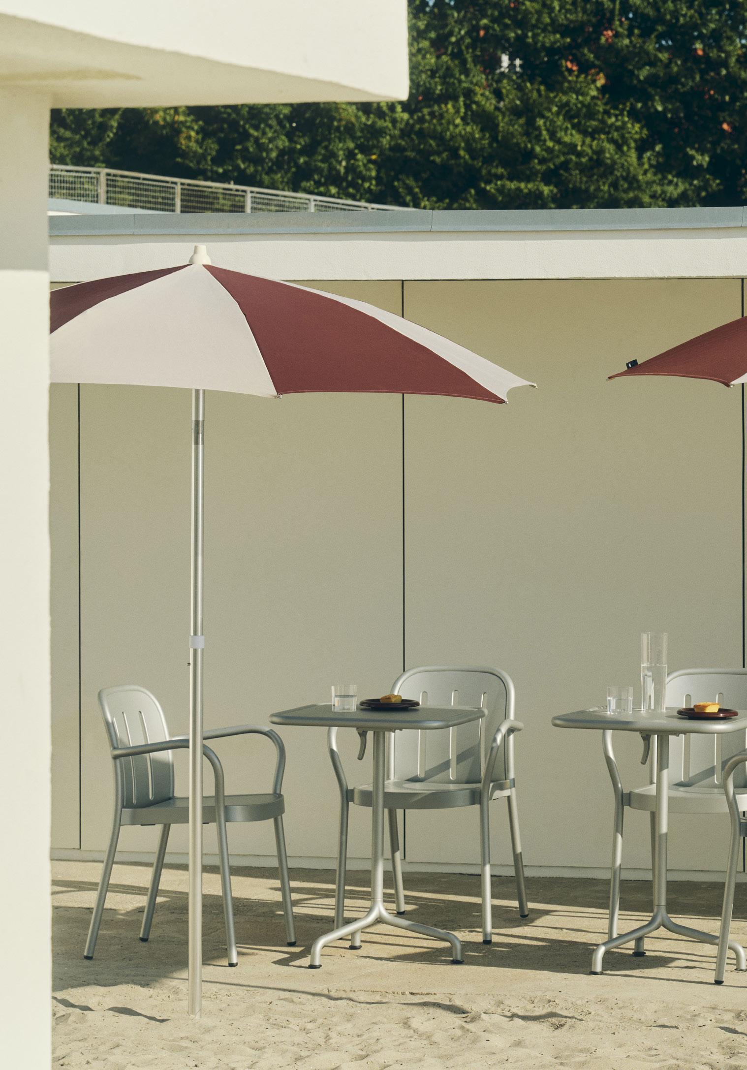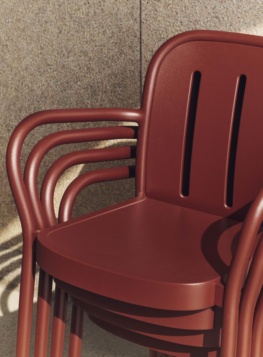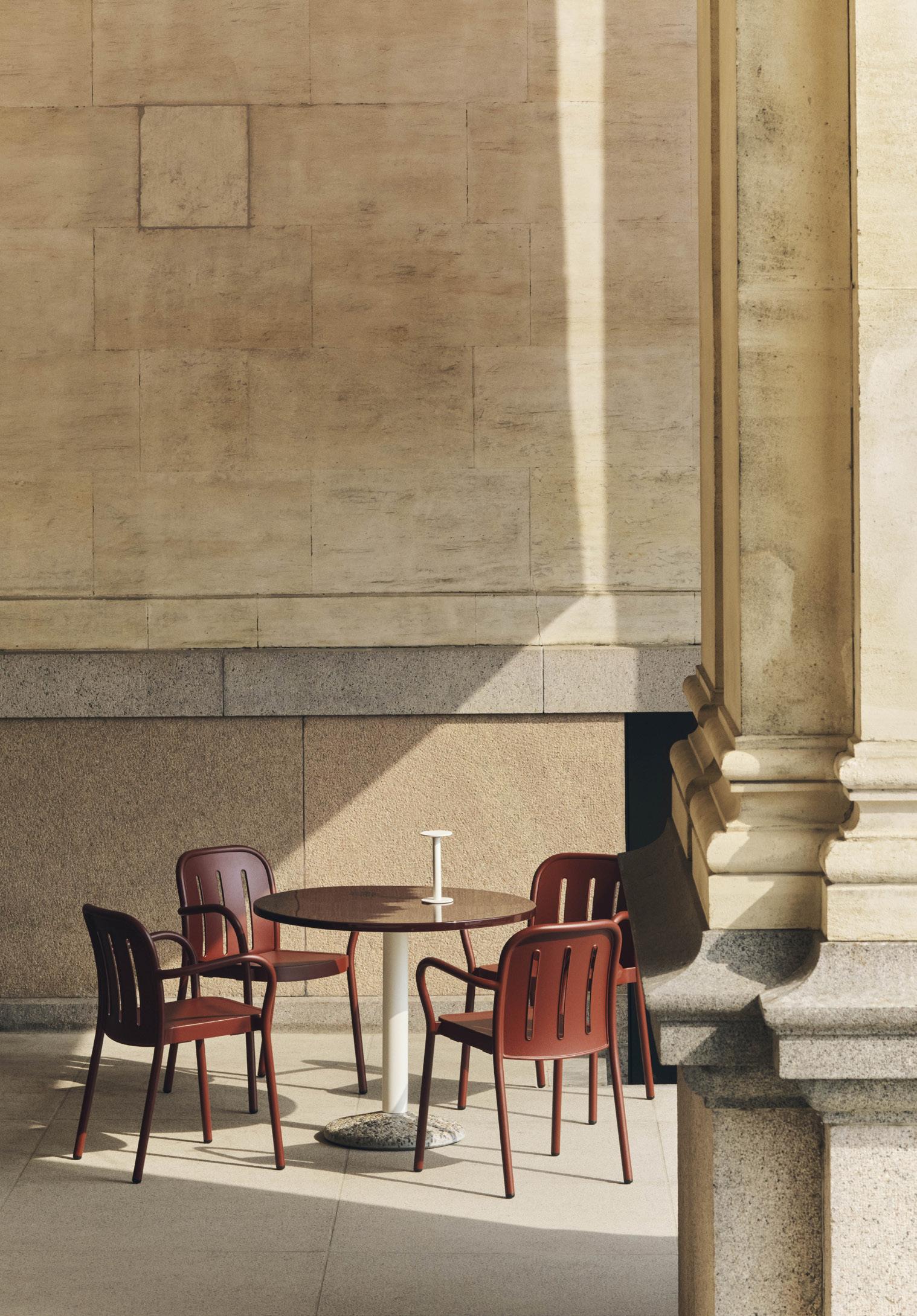 Julien Renault’s Deville Collection offers a contemporary take on the archetypal bistro set, reinterpreting a classic typology that naturally blends the charm of familiarity with industrial strength. Inspired by furniture from a favourite café in Brussels, Renault translates its spirit through generous proportions, softly curved frames, and lightweight aluminium construction. The result is a collection of outdoor tables and chairs that feels both practical and quietly nostalgic, built to last while remaining easy to move and arrange. By reimagining everyday bistro designs, Renault creates a range of timeless stackable chairs and tilt-top tables, bringing flexibility to a wide variety of outdoor environments.