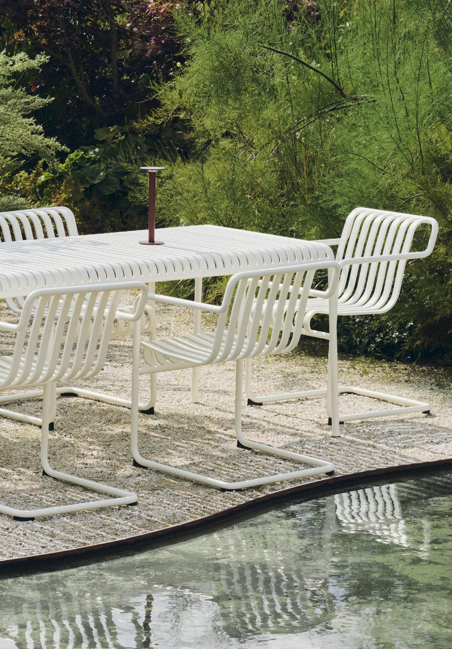 All HAY’s outdoor furniture and lighting collections are made in durable, weatherproof materials, specifically chosen for their ability to withstand the elements and easiness to clean and maintain, enabling you to enjoy outdoor life all year round.