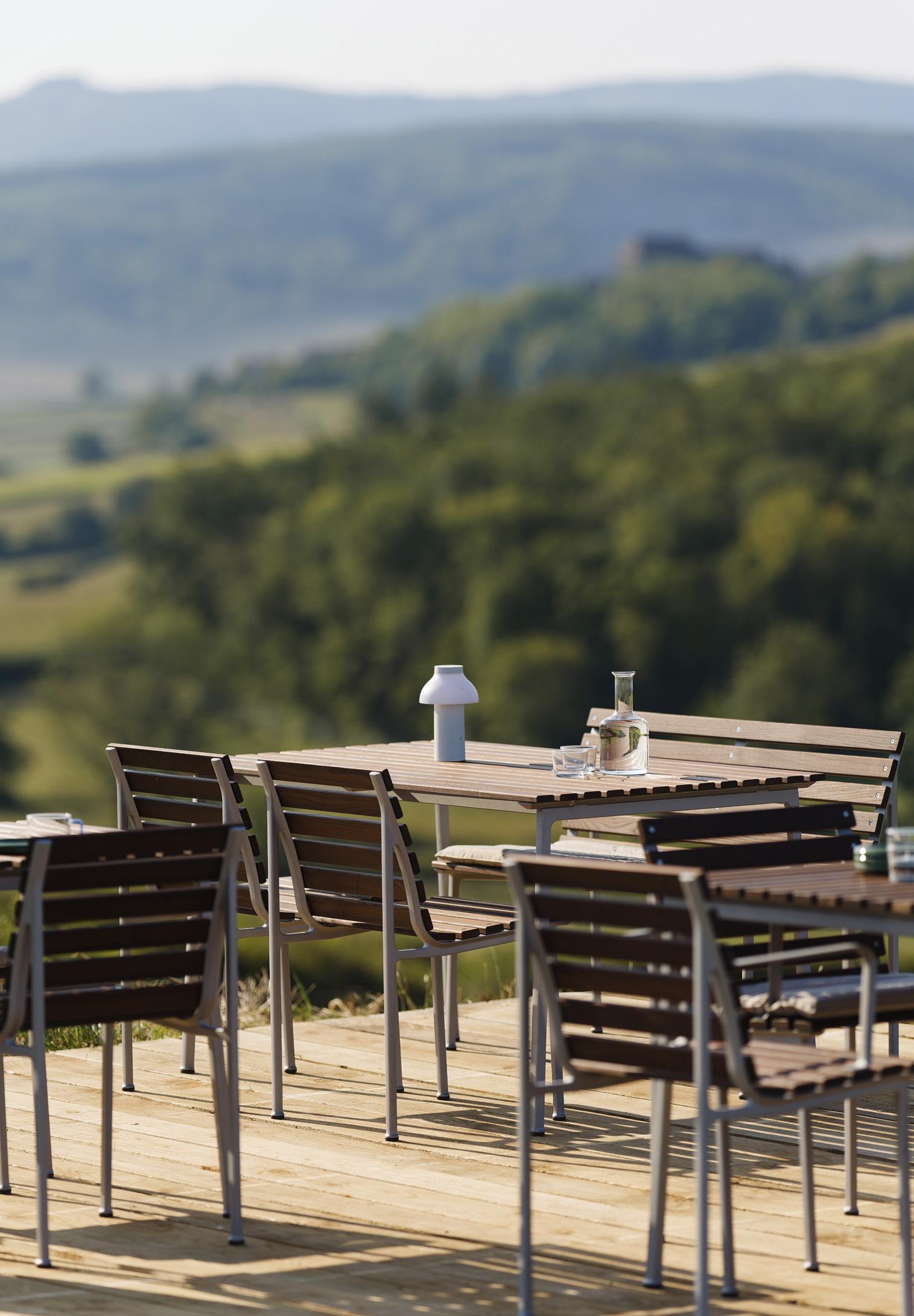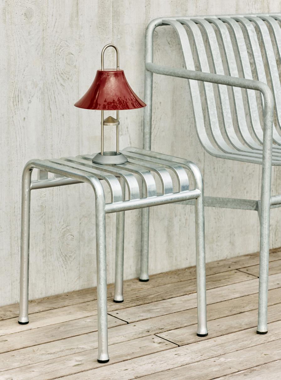 HAY’s extensive range of outdoor furniture and lighting allows you to create a personalised balcony, patio, or garden. Designed to make the most of any outside space, the assortment includes a variety of chairs, tables, and lounge furniture that can be combined to create a multitude of dining or relaxing set-ups that cover all your outdoor needs. The outdoor collection also offers a variety of battery-powered Portable lamps featuring standing or hanging designs, giving users the freedom and flexibility to bring light and ambience outside.