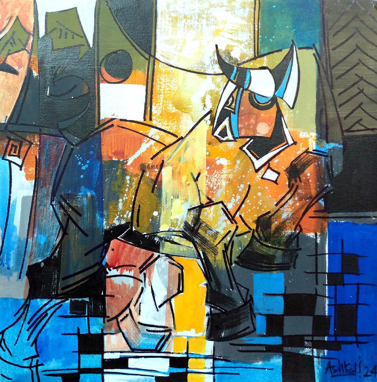 Ashkal says that his art grows out of his love of learning about the world, its people and diverse cultures. Not content to simply sit and paint what is close at hand,Ashkal has travelled widely, and with a lively curiosity, interprets the essence of people in planes, angles and perspectives that embrace the ancient and modern.