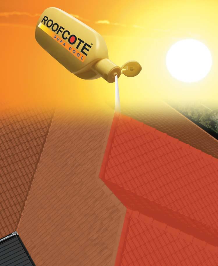 • Roofcote Supa Cool® is our heat reflecting roof membrane coating system. Specially engineered pigments used in Supa Cool cut down the amount of light absorbed by the roof surface by reflecting infrared light back into the atmosphere instead of converting it to heat. Less heat means a cooler home.