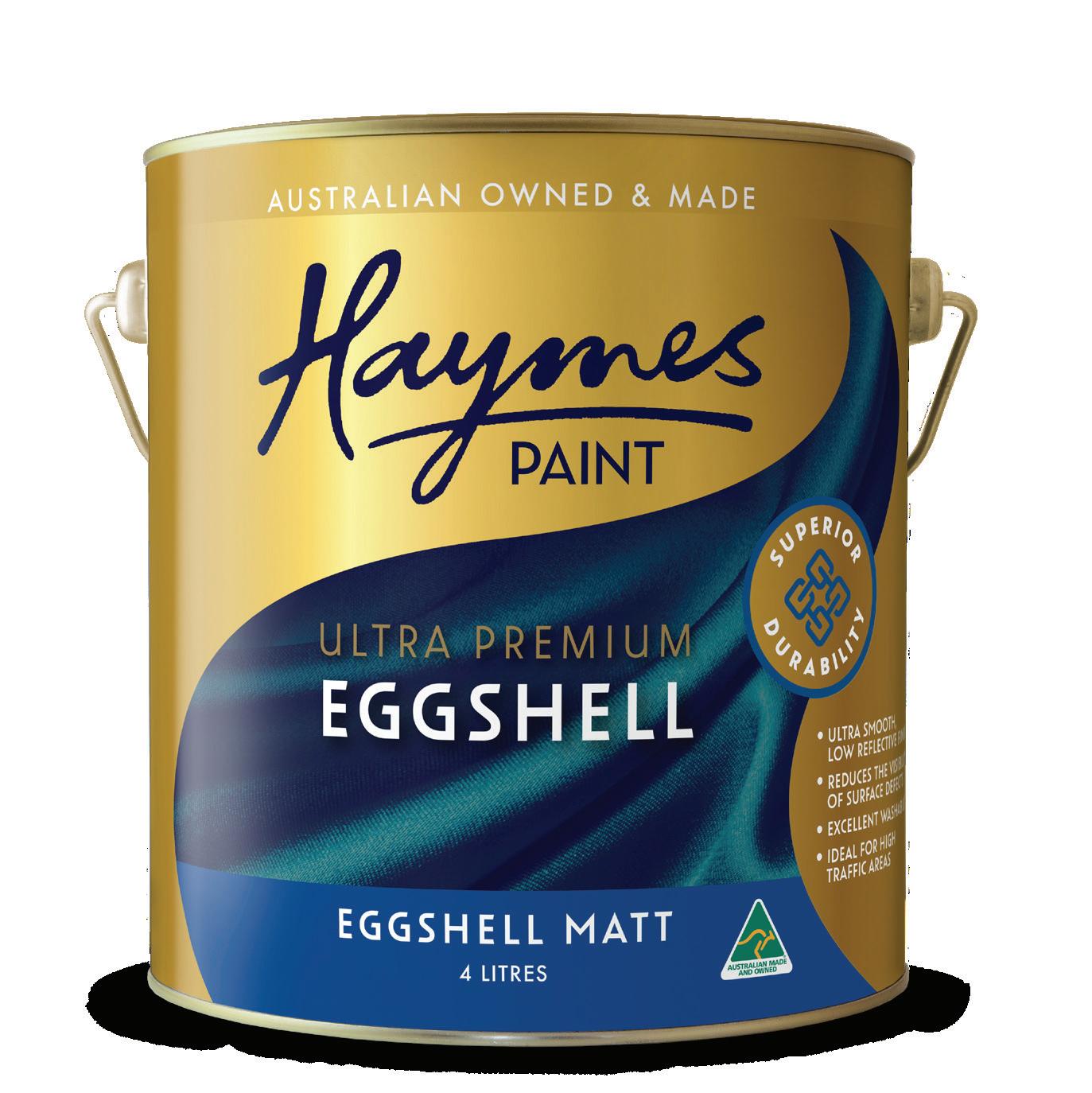 At Haymes Paint, our commitment is to provide the highest quality product. Our Ultra Premium range, as the name suggests, is our premium product offering. The latest addition to our Ultra Premium Range, Eggshell offers a modern, enduring finish in any of our Haymes Paint range colours. Haymes Paint Eggshell will elevate your space; it can bring a blank canvas to life or repaint an existing shade with ease. This product will not only cope with the day‑to‑day every day but transform and inspire with its gallery‑ quality features.