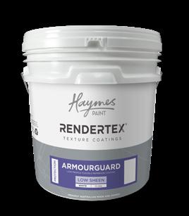 Haymes Rendertex ArmourGuard has a low sheen, low profile finsh, that’s able to be tinted to any colour from the Haymes Paint colour palette.