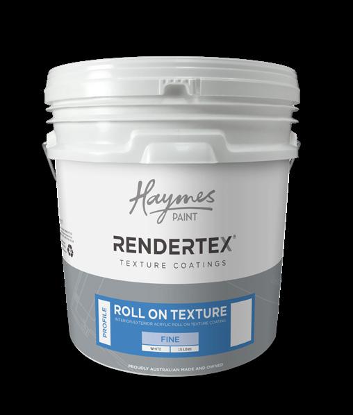 Rendertex Roll-On Renderpaint is a premixed highly durable, interior and exterior water-based 100% acrylic, pigmented texture coating that generates a decorative subtle texture across a range of substrates.