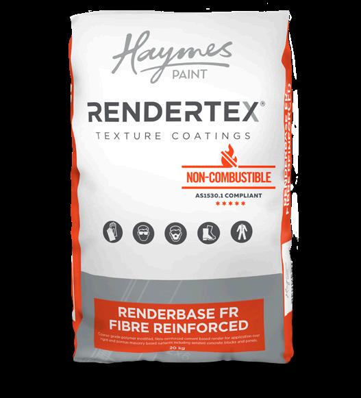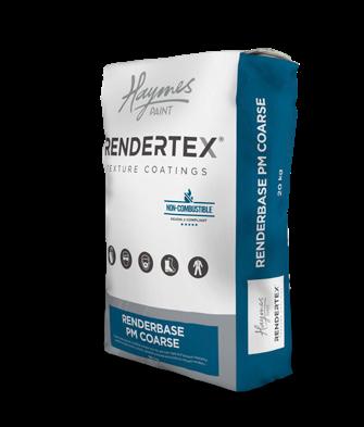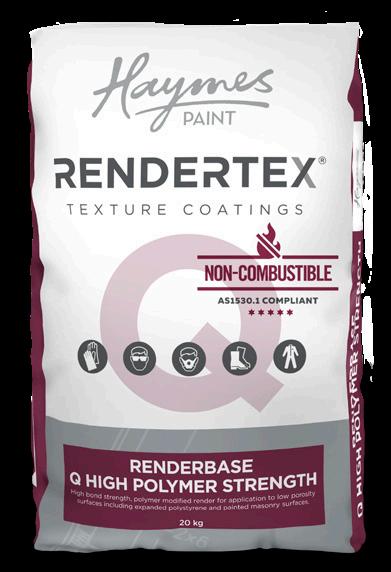 Haymes Rendertex textural coatings now includes a range of Renderbase dry bag renders to suit multiple substrates. All the Haymes Renderbase and Renderbase "Q" bag ranges comply with the Australian standard AS1530 for Non-Combustibility. The Renderbase range and material is NOT deemed combustible according to CSIRO