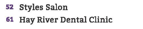 Industrial • Commercial Residential Marine • Oil & Gas • Power Generation Motor/Generator Service & Repair • Controls Fire Alarm Systems • Programmable Logic Controllers Variable Speed Drives • Water Filtration Plants Gas Dispensers • Network Cabling • Security Systems Bucket Truck Service • Trenching Service Proudly Serving Hay River & NWT for over 50 years of service Ph: 874-6806 Fax: 874-2368 9:00am to 5:00pm MONDAY TO FRIDAY #1-47031 Mackenzie Hwy, Hay River, NT X0E 0R9 CHIEF KENNETH CAYEN PHONE (867) 874-6677 FAX (867) 874-2486 chief@wpfn.ca Downtown Hay River 867-876-0111 77 Woodland Drive Hay River NT X0E 1G2 RBC 2023-03-08 1.8hG MU.indd 1 2023-03-15 2:05 L’ESKAL Massage & Beauty Services BY APPOINTMENT ONLY leskal2010@hotmail.com 867-874-6338 876-1065 (Text Only) 39-102 Street Solid State Hosting Sales | Service | Consulting Woodland Drive, Hay River NT. We specialize in all IT Related Fields providing Sales, Service and Consulting to Residential, Businesses and Industry across all the NWT and Northern Alberta. Have questions or are looking to see what we can get? Send us a message on Facebook, Send us an email or give us a call! | 1-867-445-8454 | Website: solidstatehosting.ca | | Email: sales@solidstatehosting.ca | Facebook: SolidStateHosting | Solid State Hosting 2023-02-17 1.8hG MU.indd 1 2023-03-20 9:02 AM DOWN TOWN HAY RIVER 867-876-1234 FOLLOW NORTHERN BUSINESS SUBSCRIBE AT uphere.ca $24.99 HAY RIVER VISITORS GUIDE 2023 63