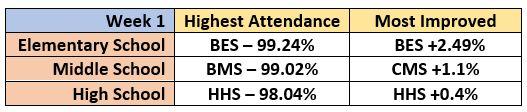 ○ District and campus attendance percentages for the prior week of school and for the entire school year.