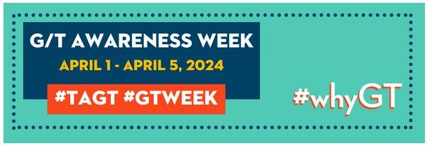 G/TAwareness Week happens the first full week ofApril every year and was created to increase awareness and encourage support of gifted education inTexas.Through online community discussions and social media posts, parents, educators, and advocates come together to celebrate giftedness.All throughout the week,TAGTwill push out information and create conversations to dispel myths and provide a deeper understanding of the purpose of gifted education.ThisApril, we ask you to share #whyGTmatters to you, your family, and your school.