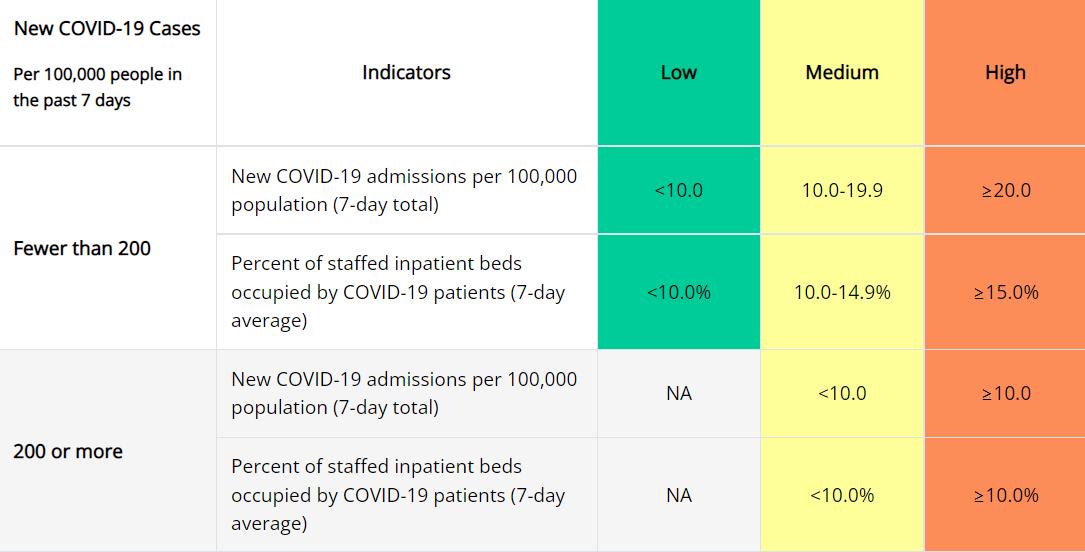 Low, medium and high-risk levels are determined based on the number of new cases per 100,000 residents in the past seven days, new hospital admissions in