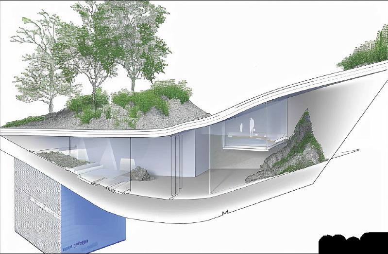 geometries of natural systems into a continuum of nuent and dynamic space 3 where oppositions between exterior and interior, light and dark, natural and artiocial landscapes are synthesised. Lines of energy converge within the Pavilion, constantly redeoning the quality of each exhibition space whilst guiding movement through the