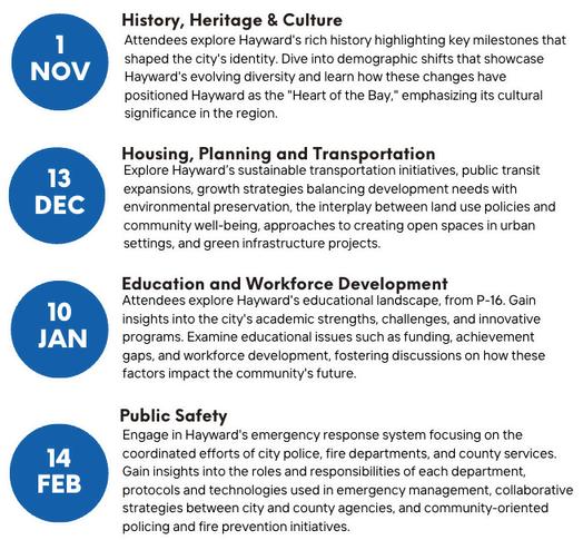Leadership Hayward is an intensive eight-month program, running from November to June, with one fun Friday session per month. Through our partnership with California State University, East Bay, University Extension, participants can earn 2.0 units of Continuing Education credit upon successful completion of the program.
