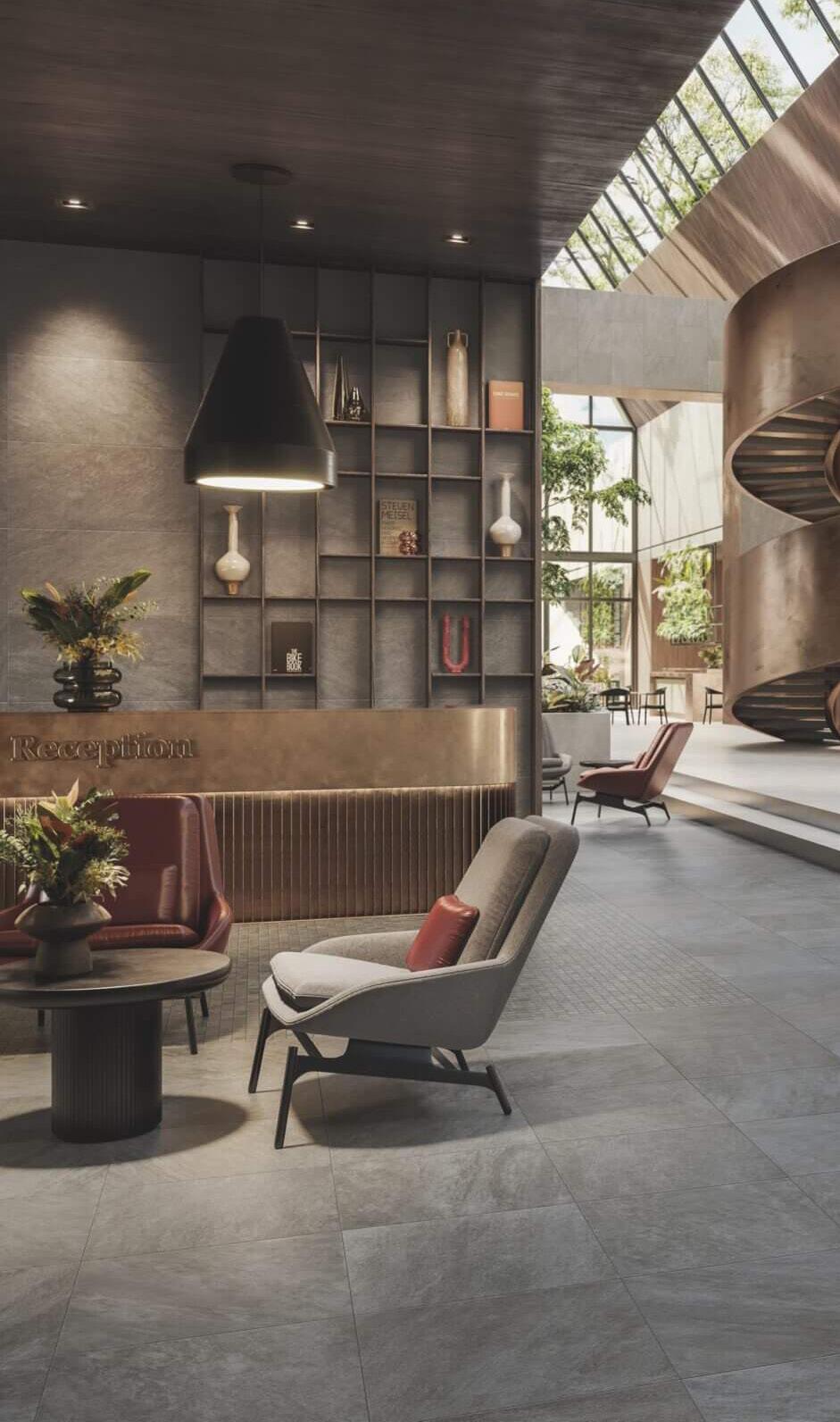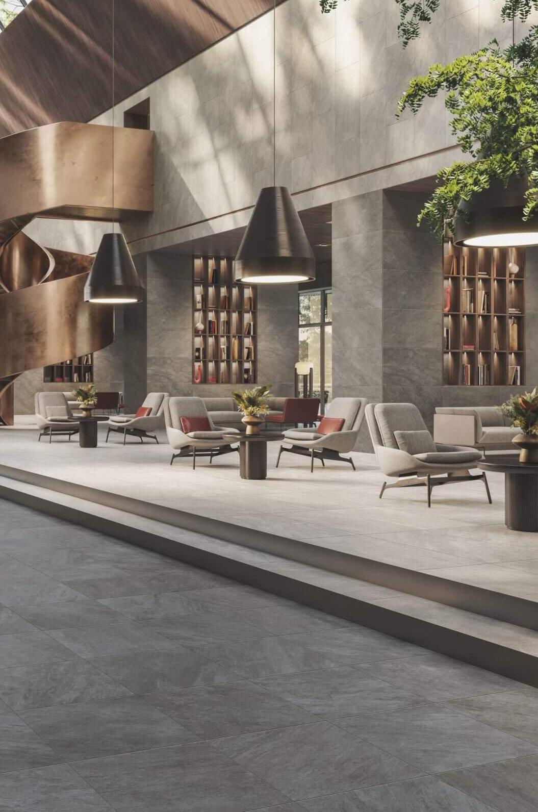 El lobby, los pasillos y las salas de estar son el corazón del hotel. En ellos se generan las primeras impresiones y se consolida la identidad de marca. Un vestíbulo con recubrimientos cerámicos o porcelánicos transmite confianza, modernidad y sofisticación.