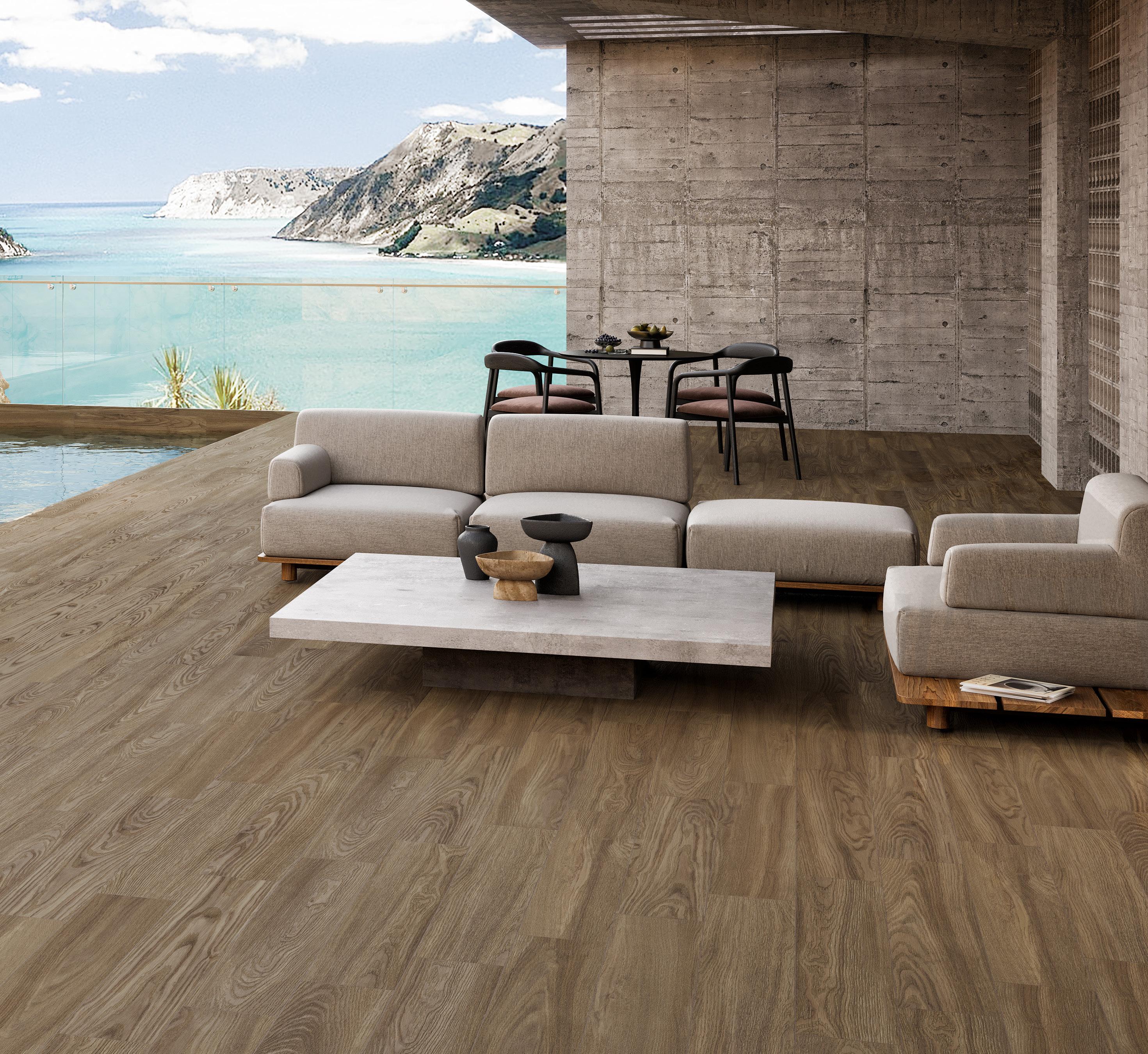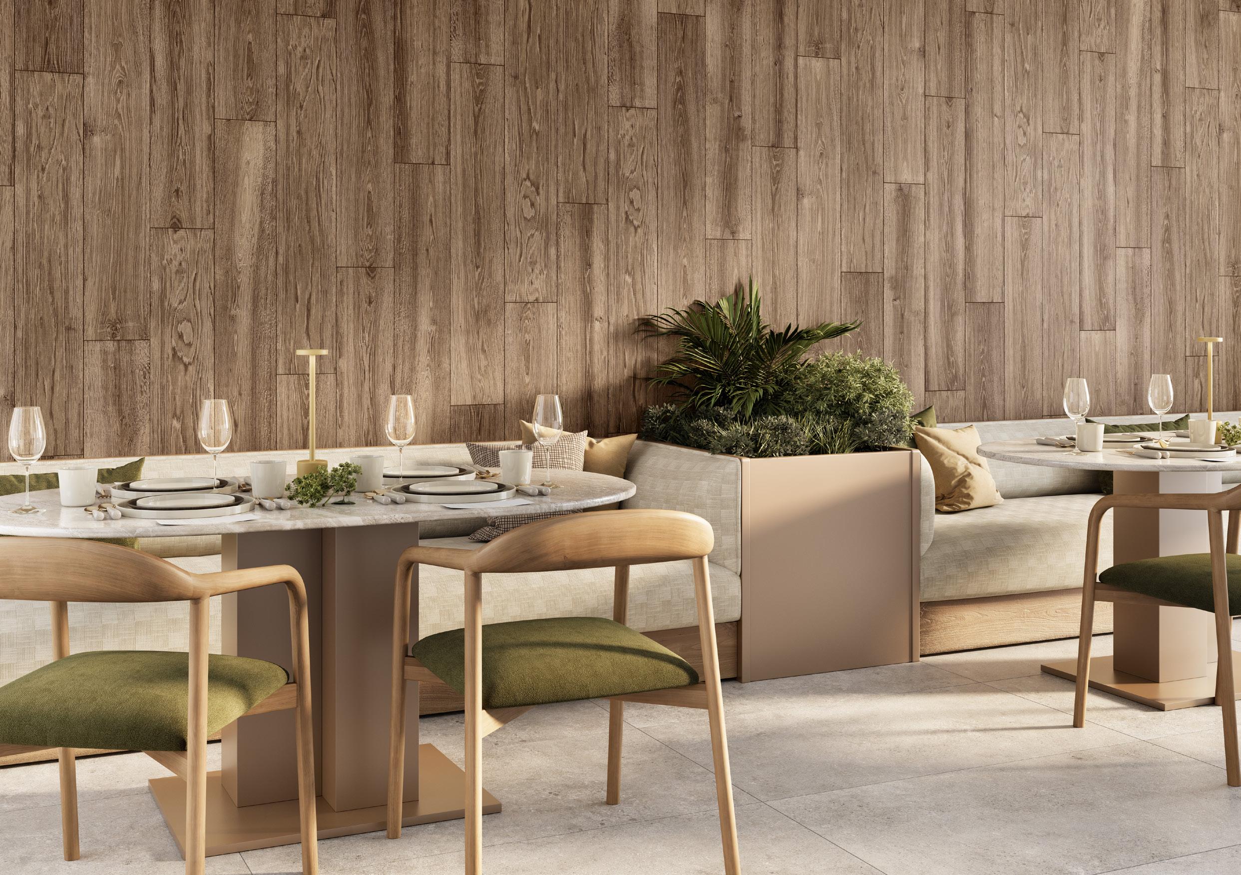 La experiencia de un hotel también se define por sus espacios exteriores: terrazas, jardines, piscinas y fachadas. Aquí, los cerámicos y porcelánicos ofrecen el mismo nivel de belleza y rendimiento que en interiores, sumando beneficios de eficiencia energética y sostenibilidad.
