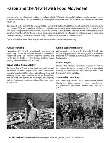 8 2016 Hazon Food Conference • Please wear your name badge throughout the Conference!