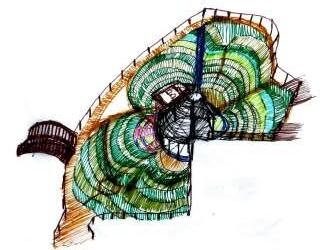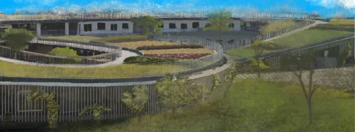 The diagrams above present the changes to the site. Demolition is seen in red, the proposed in blue and the last identifies new landscaping.