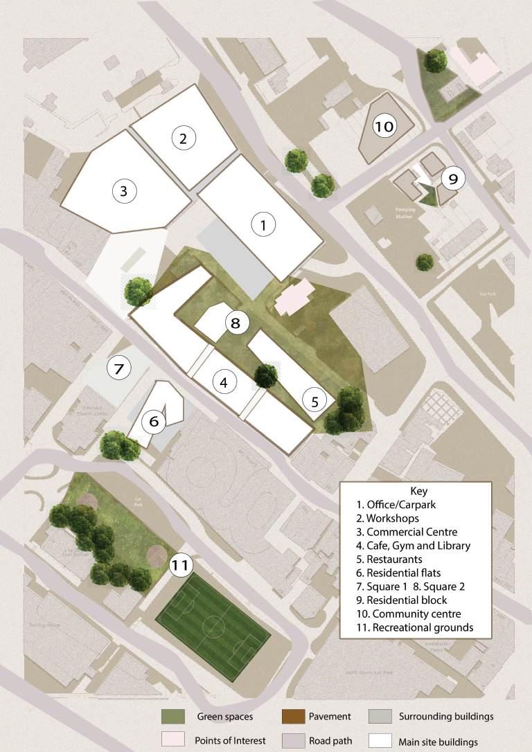 The diagrams above are key for the circulation, site strategies, key points of interest and the classification of building types.