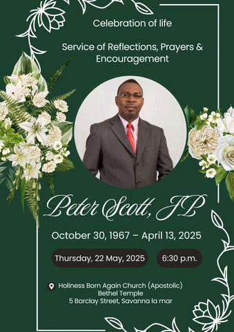 Holiness Born Again Church of Jesus Christ, Apostolic 5 Barclay Street, Savanna-La-Mar, Westmoreland, JM Pastor: Bishop Dr. E.O. Nepaul, JP