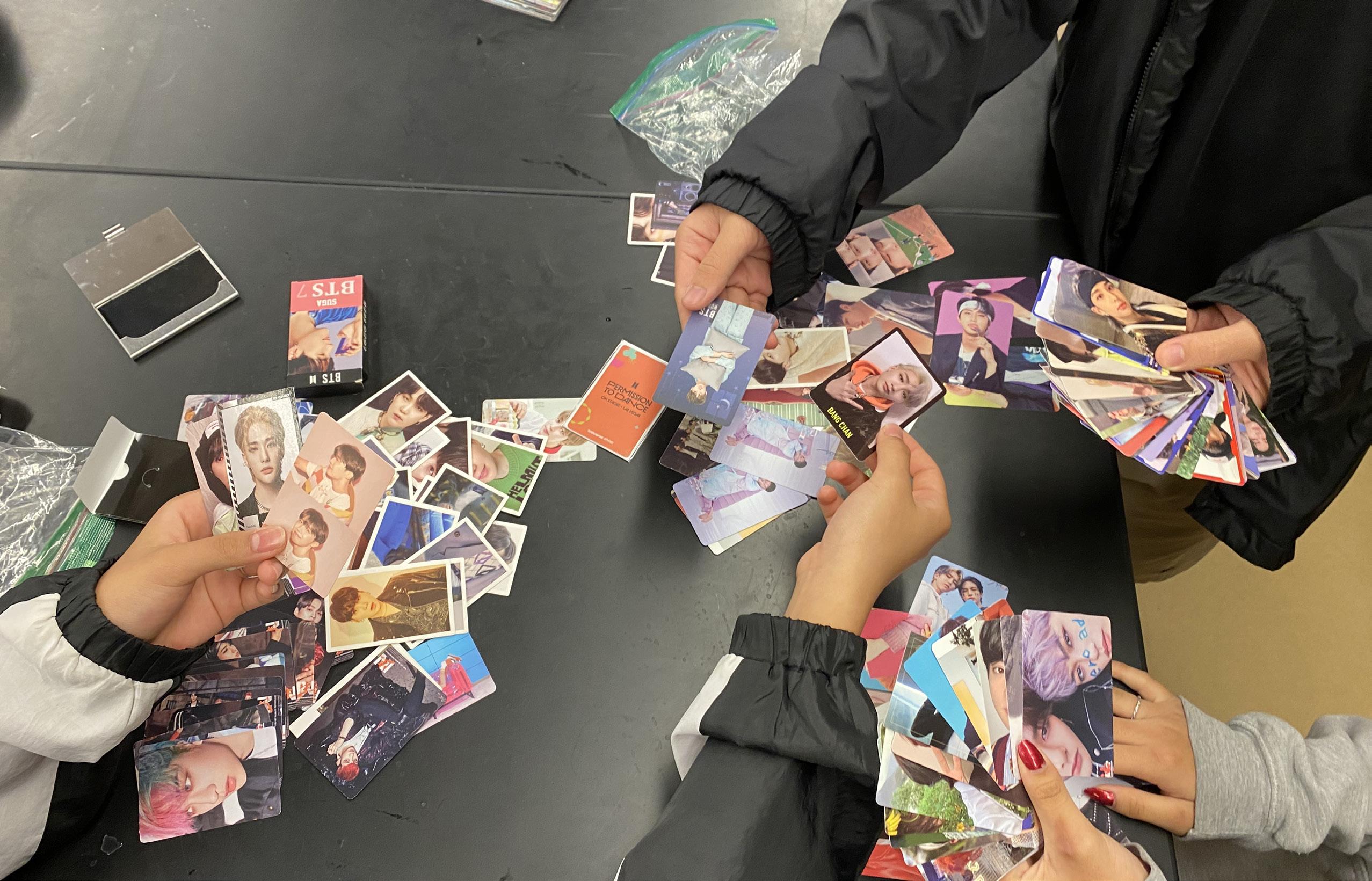 HBA K-pop fans trade K-pop photo cards, which feature photos of their favorite performers.