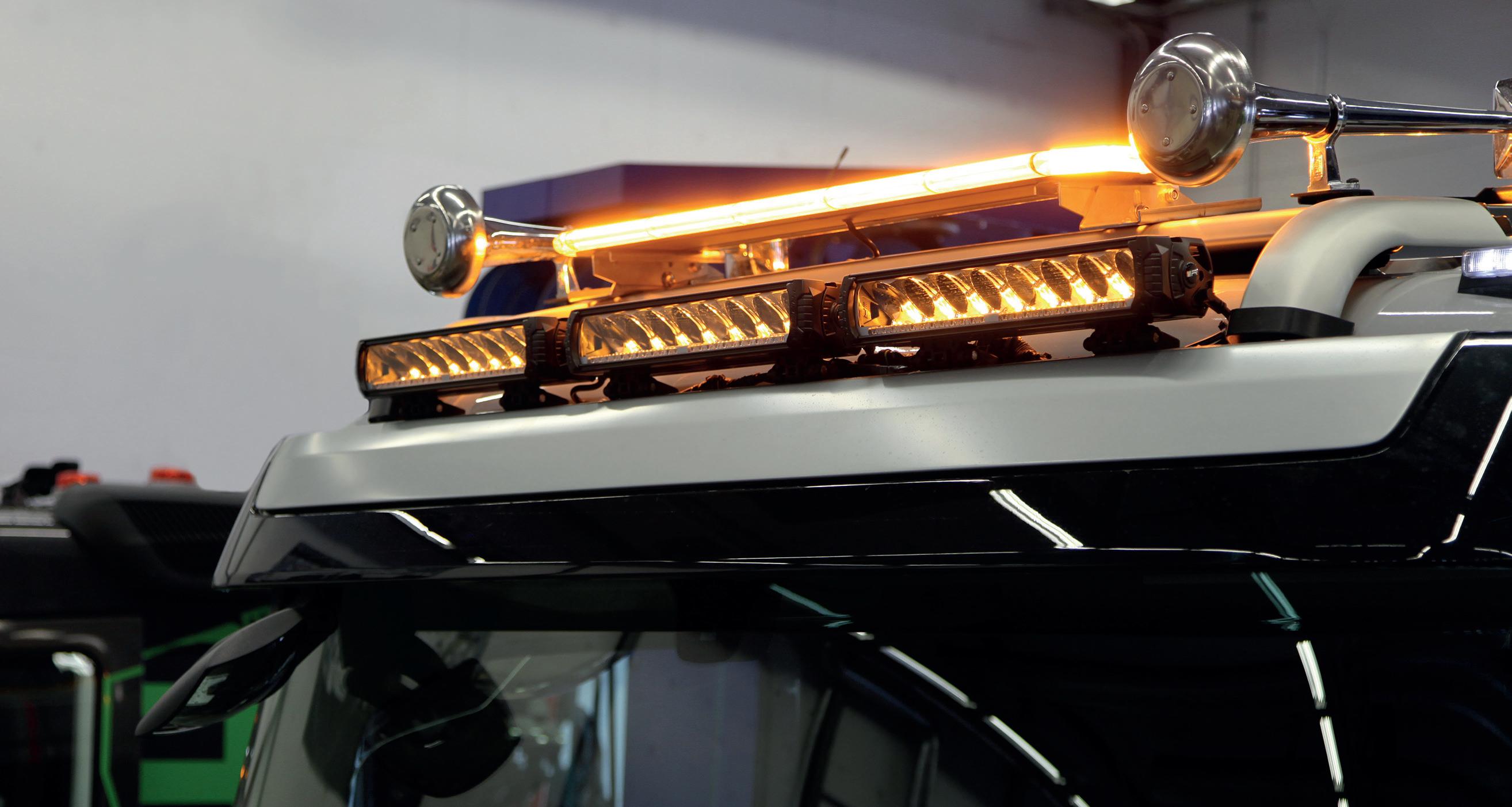 Ett paket passande Volvo Volvo FH, FM och FMX som innehåller två Hydra extraljusramper och ett fäste specialanpassat för montering ovanpå solskyddet. Hydra är en robust, kurvad extraljusramp med 14 st högeffektiva dioder som tillsammans ger 140 W. Hydra har en ljusbild som kombinerar både längd och bredd och är E-godkänd enligt ECE R112. Ett paket lyser med 1 lux på 677 m. Positionsljuset finns med ett ECE R7 E-godkänt vitt ljus och ett orange stylingljus.