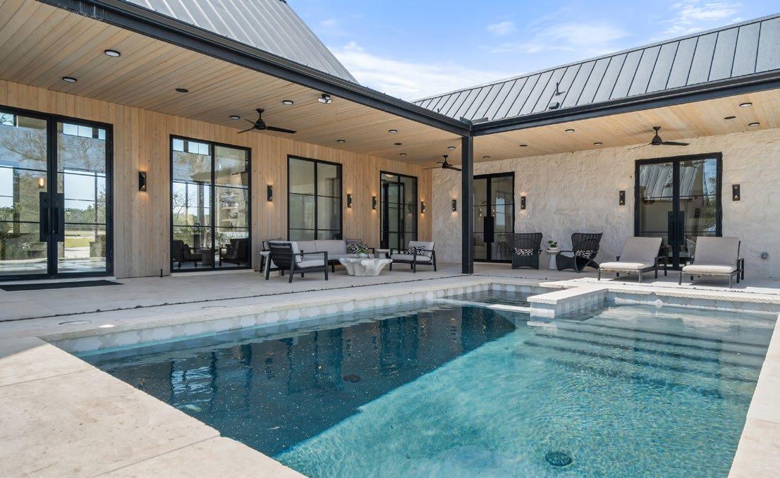 This transitional Scandinavian-inspired custom home is a refined blend of warmth, minimalism, and luxury. With an emphasis on organic textures and natural light, the design balances clean lines with rich materials like heavy mortar slurry stone, smooth plaster, and wide-plank white oak. The home’s signature element is its expansive 12x12 custom steel-framed window, framing serene Hill Country views and filling the open-concept living space with light. The kitchen features Taj Mahal quartzite countertops, a Venetian plaster vent hood with built-in spice ledges, and custom cabinetry in warm white oak. Handcrafted light fixtures and subtle champagne bronze finishes elevate every space. The layout was designed to flow effortlessly between indoors and out— with seamless access to the outdoor kitchen, living space, and pool. Every detail, from the layered lighting to the hidden prep kitchen, reflects a careful balance of form and function. This home is not just designed to impress—it’s built to feel like home.