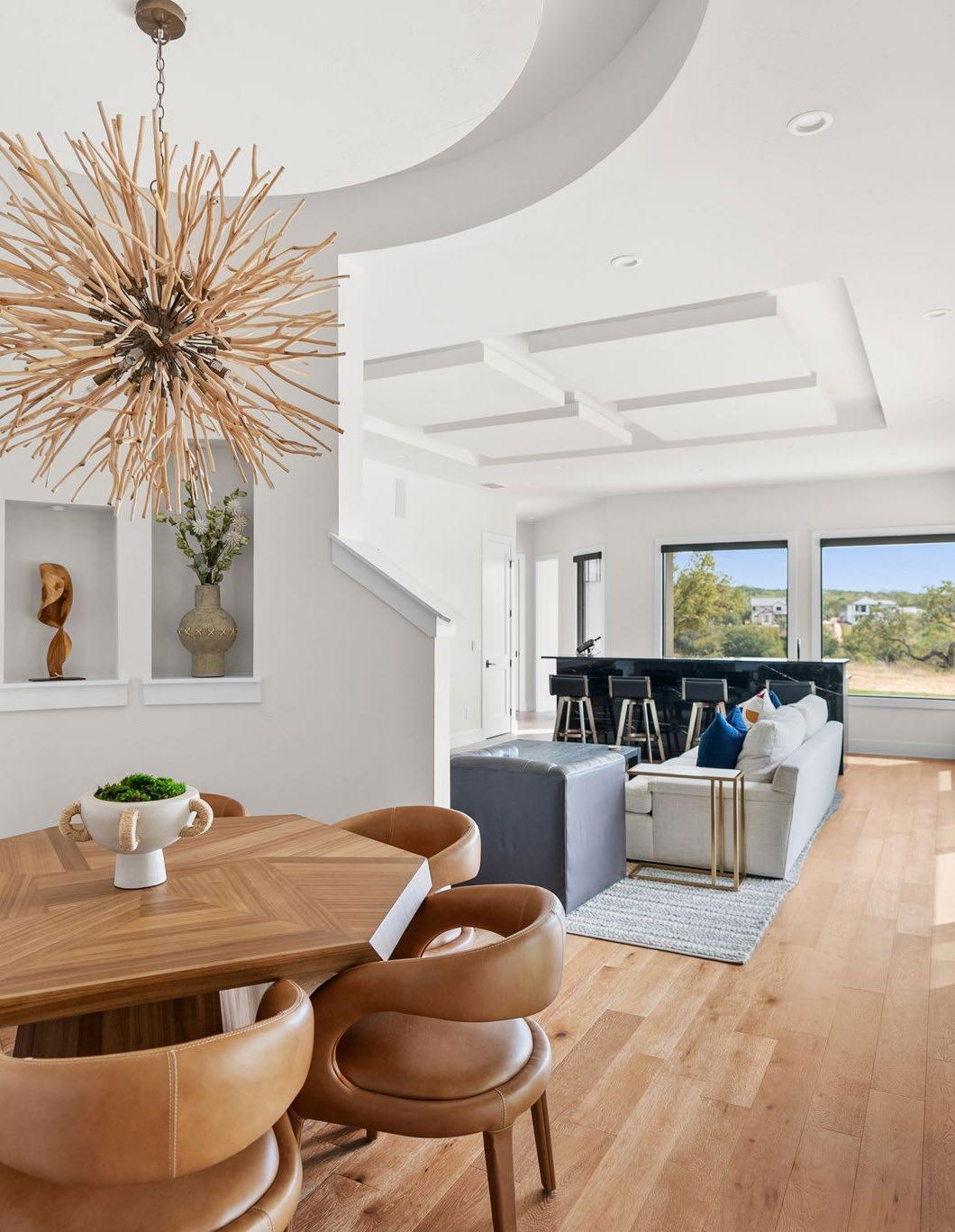 The City Park Project in West Austin is a stunning example of transitional contemporary design, blending clean, modern lines with warm, natural materials for a space that feels both elevated and inviting. Set on 8 acres with sweeping Hill Country views, the home was thoughtfully designed to create an immersive indoor-outdoor experience—with a negativeedge pool, expansive backyard, and walls of glass that bring the landscape in. Inside, luxury meets function with a dedicated gym, sauna, and steam shower, while refined finishes like white oak floors, marble and quartzite surfaces, and custom Shinooki and NXT cabinetry add sophistication. Built with fire-retardant decking, soffits, and exterior materials, and surrounded by native landscaping, the City Park home is not only beautiful—it’s built to last in harmony with its natural environment.