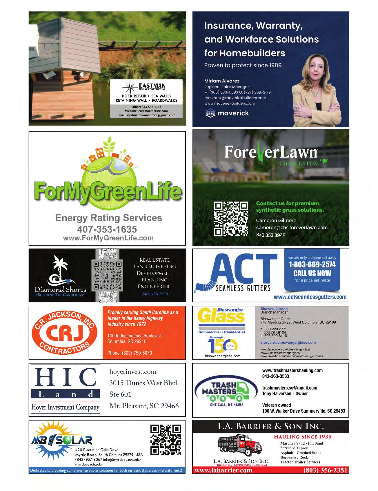 The homes highlighted in this month?s magazine have been recognized as Pinnacle Awards by the HBASC. This award was created to honor those in the industry who have achieved the highest standard of quality craftsmanship and customer satisfaction.I want to congratulate them for their success and for giving South Carolina one more source of pride to celebrate.If you are looking to purchase your new home or remodel your existing home I ask that you check to ensure that the work is being done by a professional member of a local Home Builders Association (HBA) member.