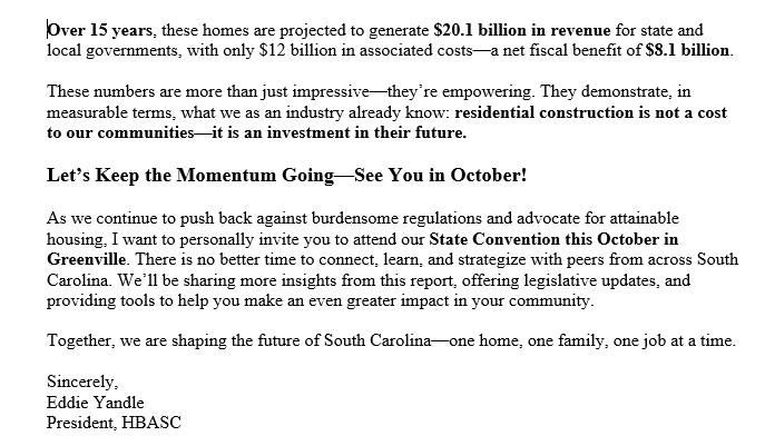 We had a product ive visit t o Washingt on, D.C., w here w e m et w it h our congressm en t o discuss key issues im pact ing t he HBAofSC. Thank you t o our w onderful sponsors