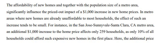 - A $1,000 increase in the median price of new homes would price an additional 115,593 households out of the market
