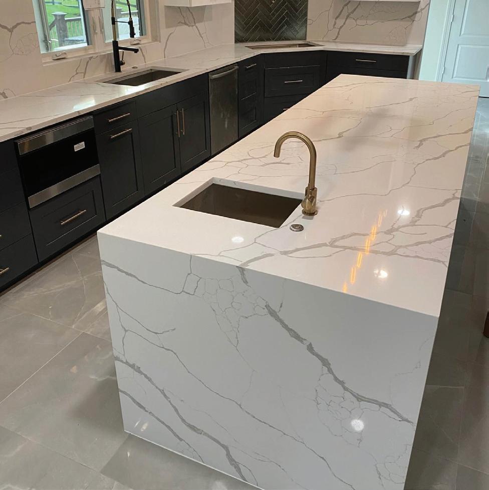 Quartz has a loyal following because of their many good qualities. Their attractive appearance, durability, and little to no maintenance. Most quartz that we carry are solid white to white with grey veining of all sizes. Quartz also gives a modern upscale look to any home.