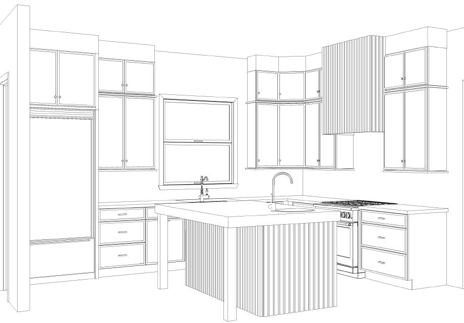 The interior of this home acts as a continuation of the light and sophisticated exterior. Bright and airy colors are seen throughout the home in conjunction with dark, bold, accents. The elegant interior features include bookcases in the study, vertical wood paneling at the owner’s bed walll, and a bench seat with storage under the windows in