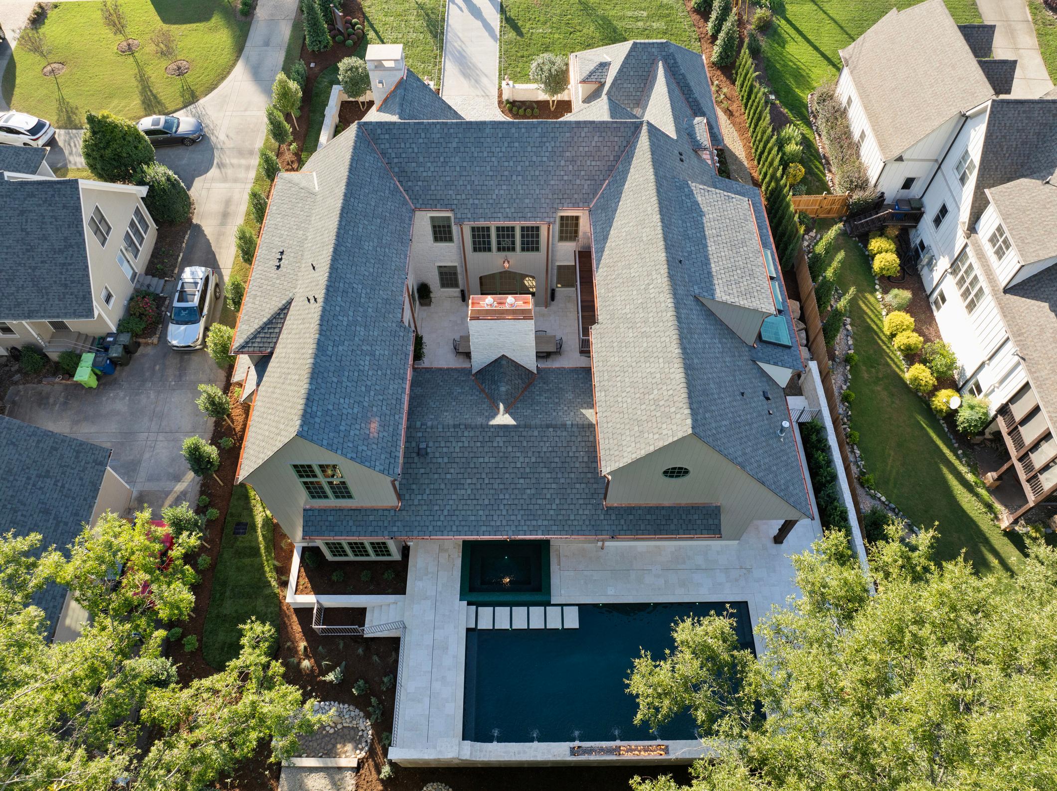 The Jubilee House was designed as a living celebration of Homes by Dickerson’s fifty years of craftsmanship, innovation, and custom homebuilding. From the moment you step inside, the home tells a story of legacy and vision. A private courtyard with a stone fireplace and marble flooring blurs the line between indoors and outdoors, while a sparkling pool glimmers just beyond Inside, skylight windows flood the expansive kitchen with natural light, a full video wall animates the media room, and whole-home smart technology elevates everyday living. Every corner is curated with care, from the walk-in shower and sauna in the primary suite to the custom lighting that highlights each architectural detail