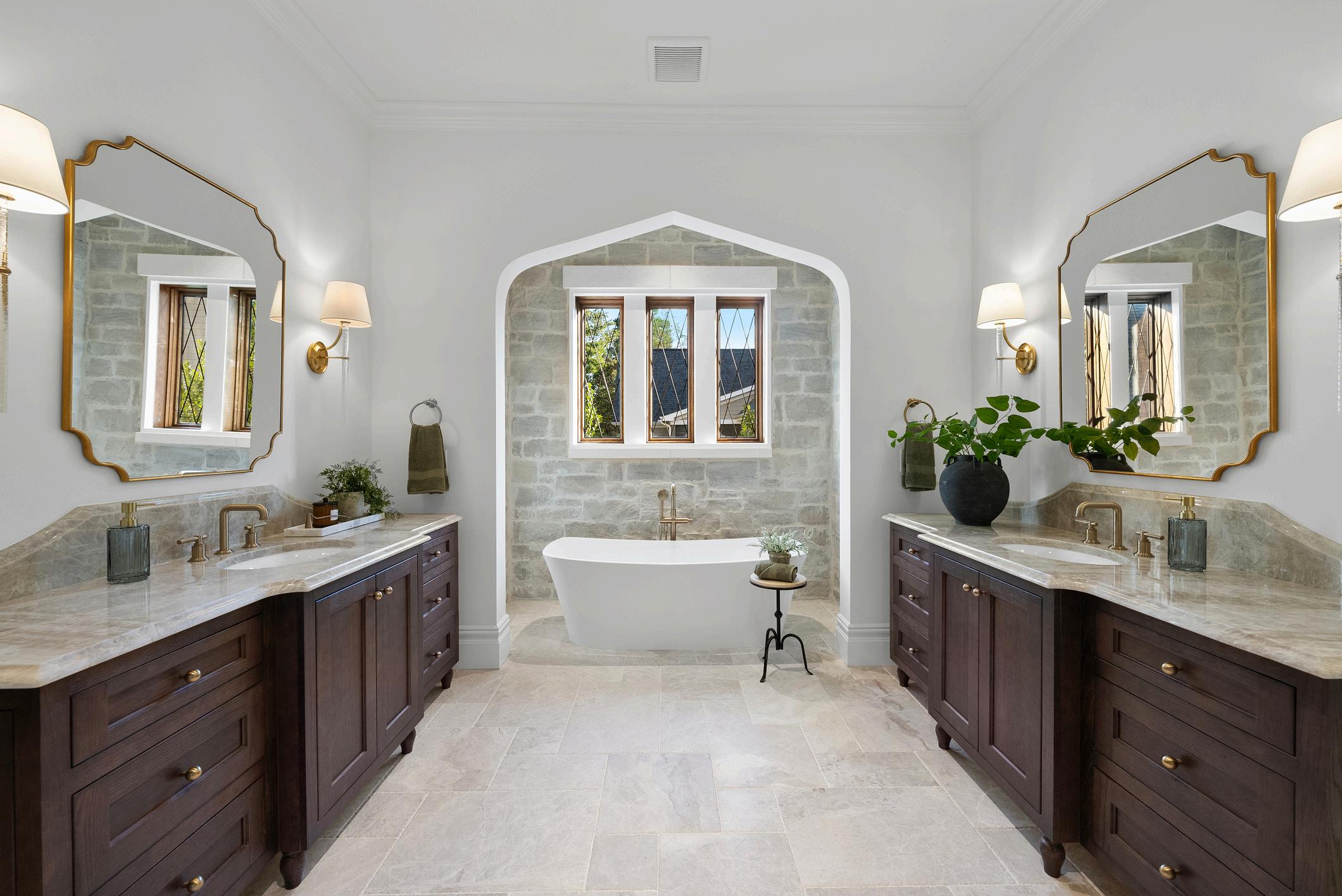 “Fifty years in, we still believe in getting it right No shortcuts, no excuses Just craftsmanship, commitment, and care,” says designer Katherine Trogdon. Her vision for The Jubilee House was inspired by the European countryside, with nods to traditional village architecture and layers of timeless sophistication Tudor arches carry through the design, refined brass finishes add a sense of history with their living patina, and pops of green bring cohesion across wallpapers, fabrics, paint colors, and tile. The build itself was entrusted to Senior Project Manager Mike Mehringer, whose leadership brought the vision to life “A home like this is built on trust, teamwork, and a relentless focus on detail,” Mehringer reflects. “It is an honor to play a role in creating something that stands as both a milestone and a masterpiece ”