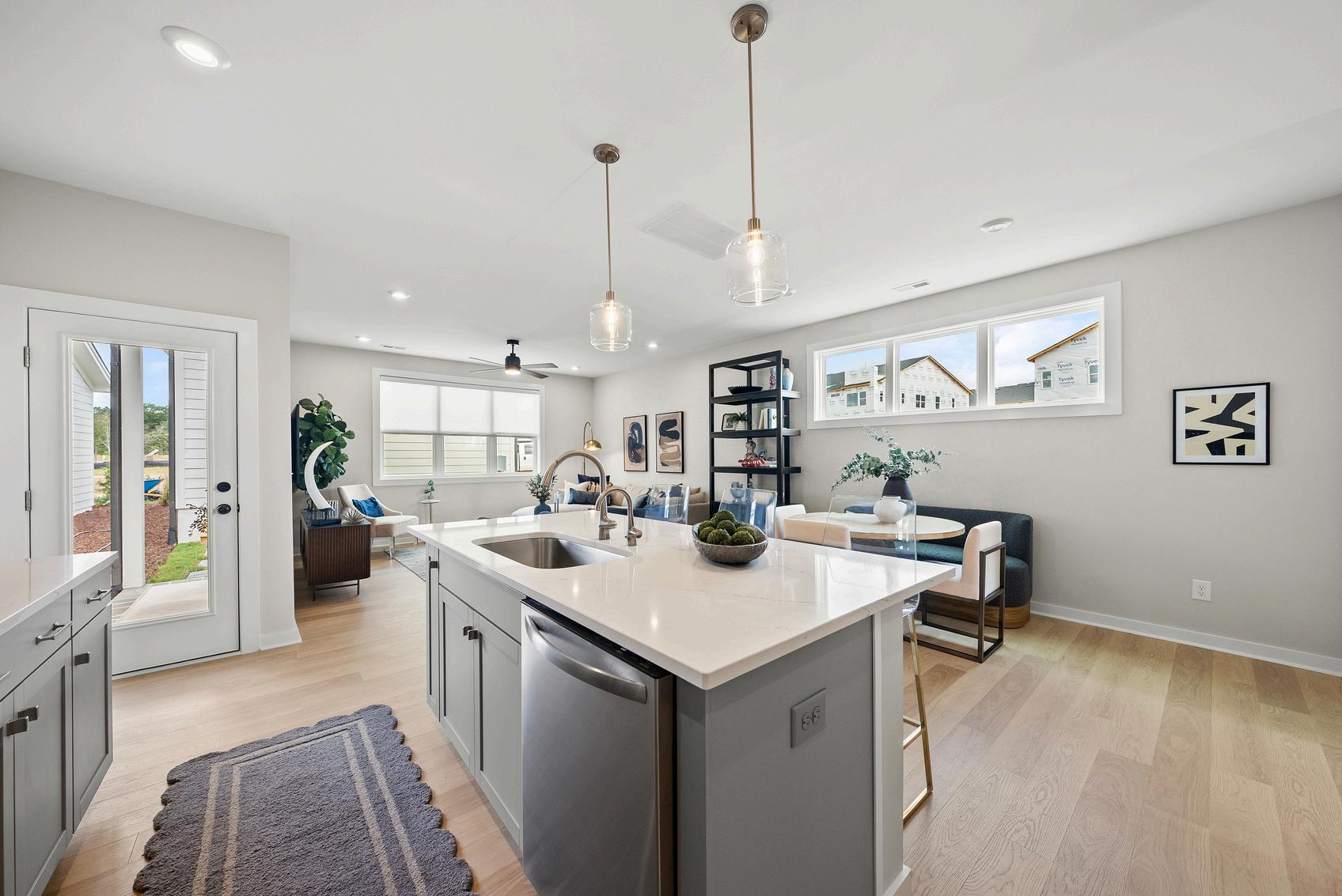 Axis is more than a home It is a symbol of balance, a meeting point of nature and modern design that reflects the essence of Homes by Dickerson’s new Elements Collection at NoVi in Chatham Park. Inspired by the rhythm of the natural world, this residence is designed to feel both calming and connected, blending organic textures with sleek, minimalist forms Every detail, from the cool-toned palette to the open gathering spaces, is meant to create a sense of harmony between daily living and timeless design.