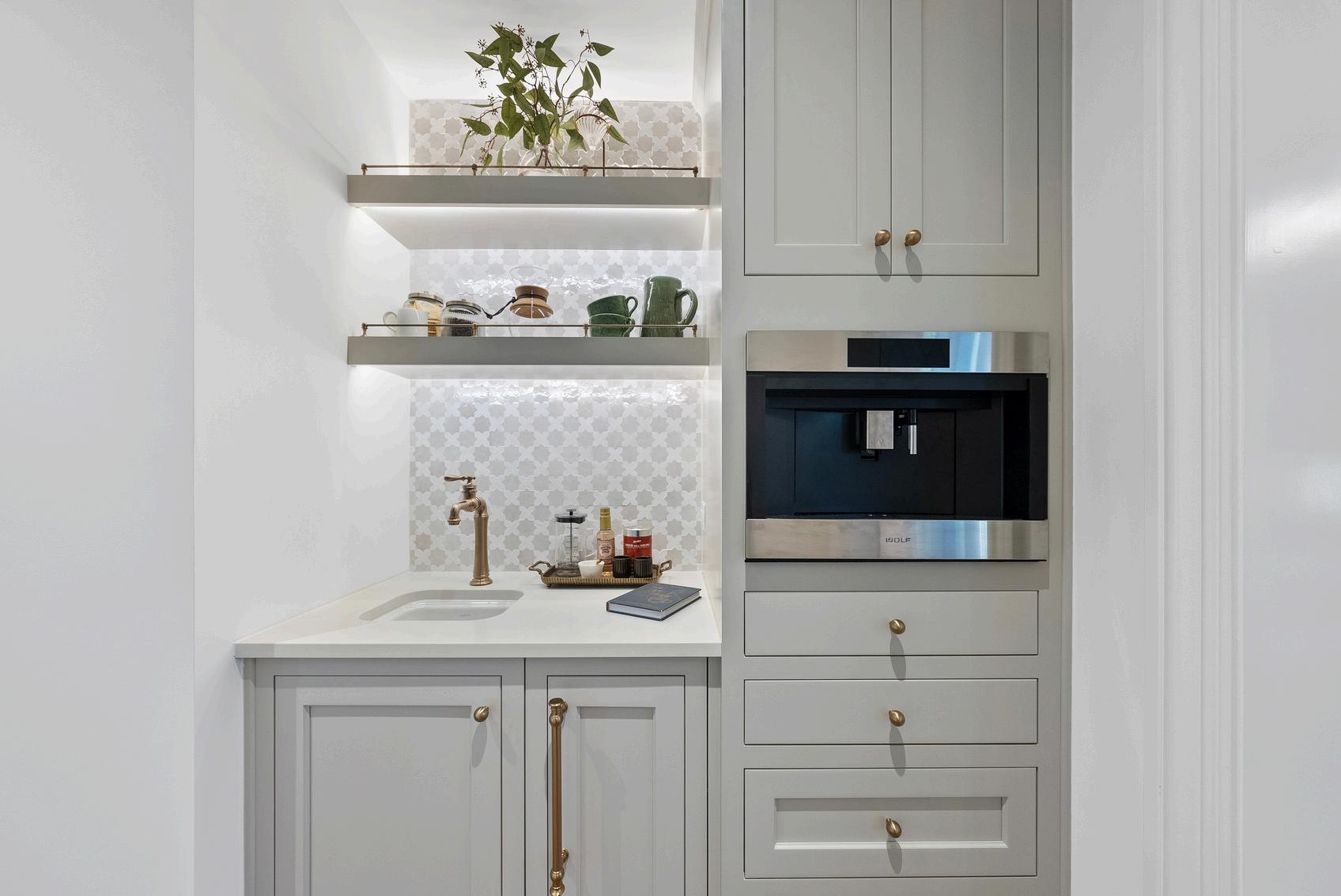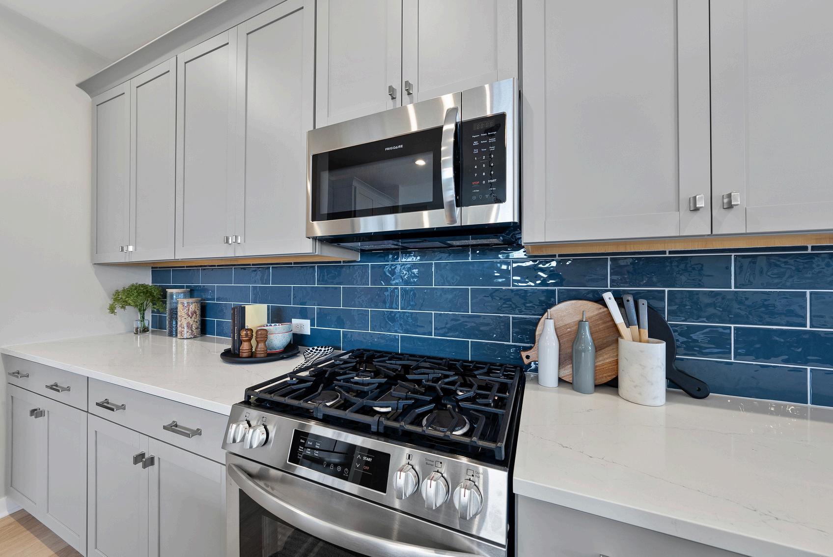“I designed this space to be the central hub of your life, where everything comes together with ease and intention,” shares designer Abigail Taylor The open concept plan allows the kitchen, dining, and family room to flow seamlessly, encouraging connection and togetherness. Blue tones appear as subtle accents in paint, tile, and stone, evoking serenity, while grays and whites ground the kitchen in modern sophistication Mixed metals, from matte black to chrome, bring depth and polish. With its clean lines and elevated simplicity, Axis transforms the concept of home into an experience of balance and beauty
