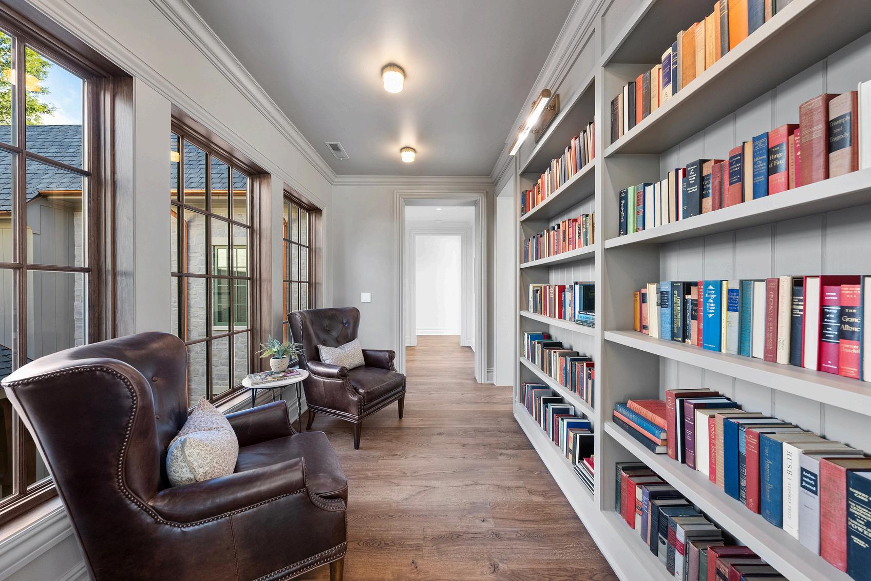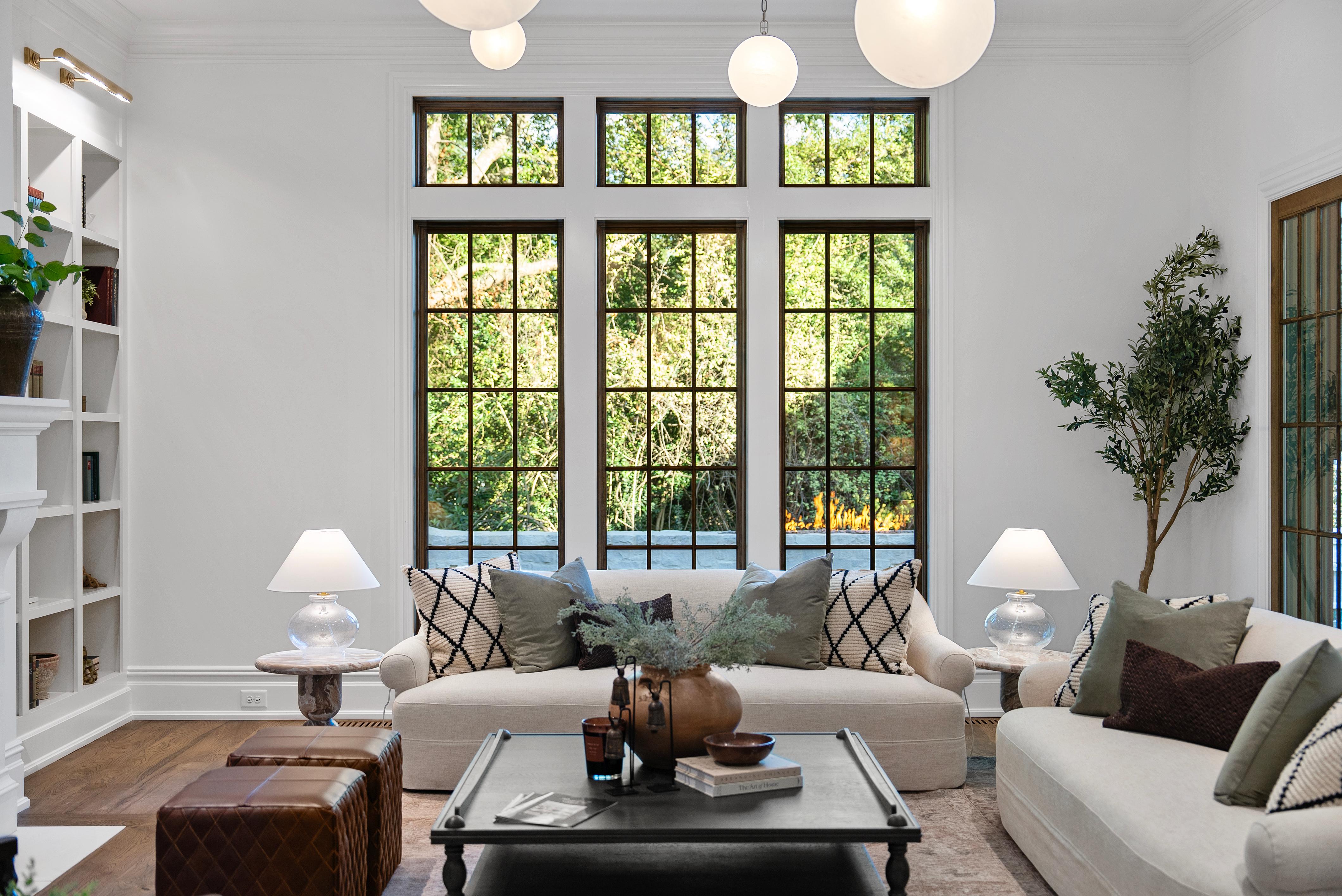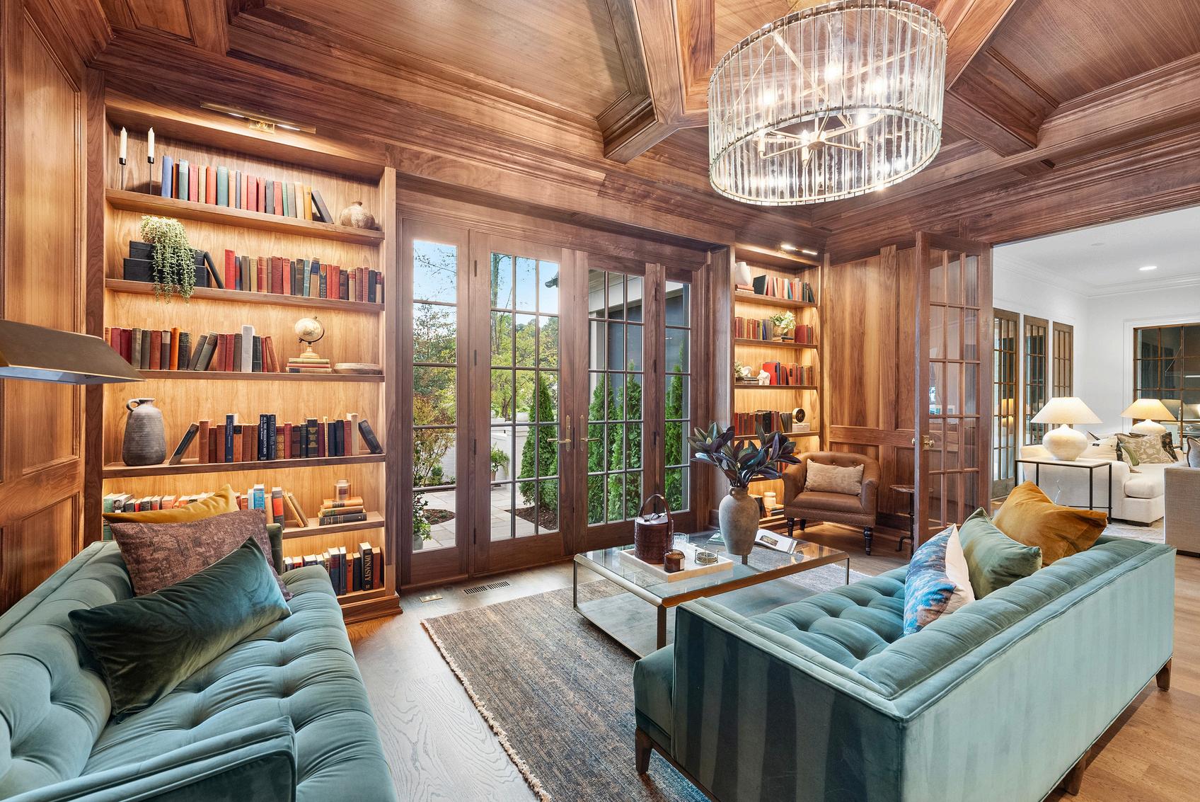 Inside, rich walnut paneling surrounds the fireplace and extends into the library, where French doors open to a hidden garden. “I am excited for you to see the intricate details of this home that give you the feeling of reading an old, forgotten letter,” says designer Gretchen Carhart That sense of romantic nostalgia is heightened by an English garden wallpaper in the owner’s entry, soft green accents, and a warm palette of natural beiges Every finish and flourish was carefully selected to evoke a sense of timeless craftsmanship and old-world elegance, creating a retreat that feels both sophisticated and welcoming.