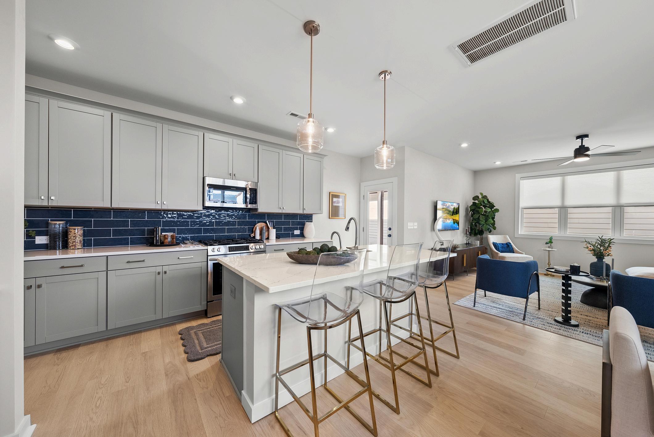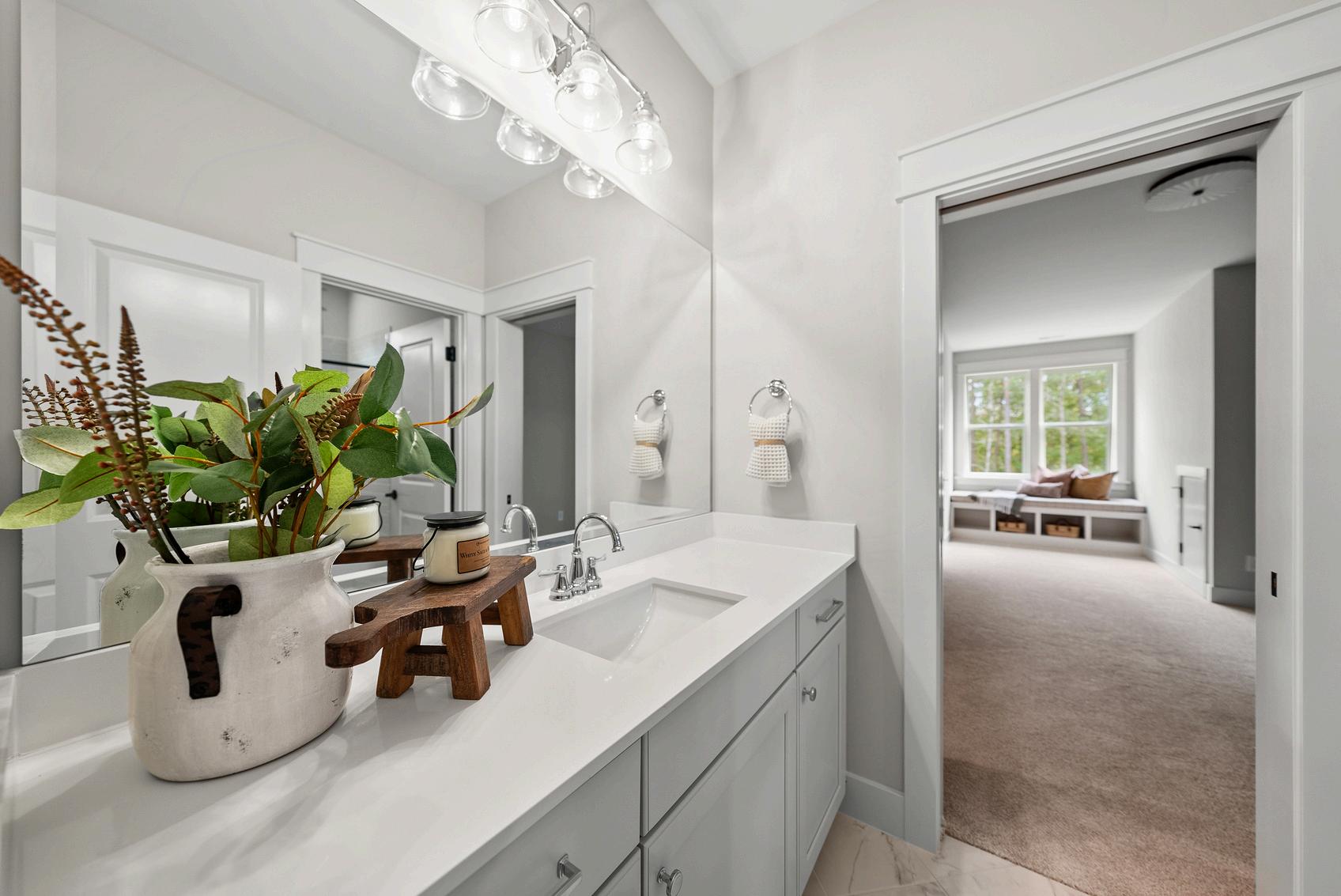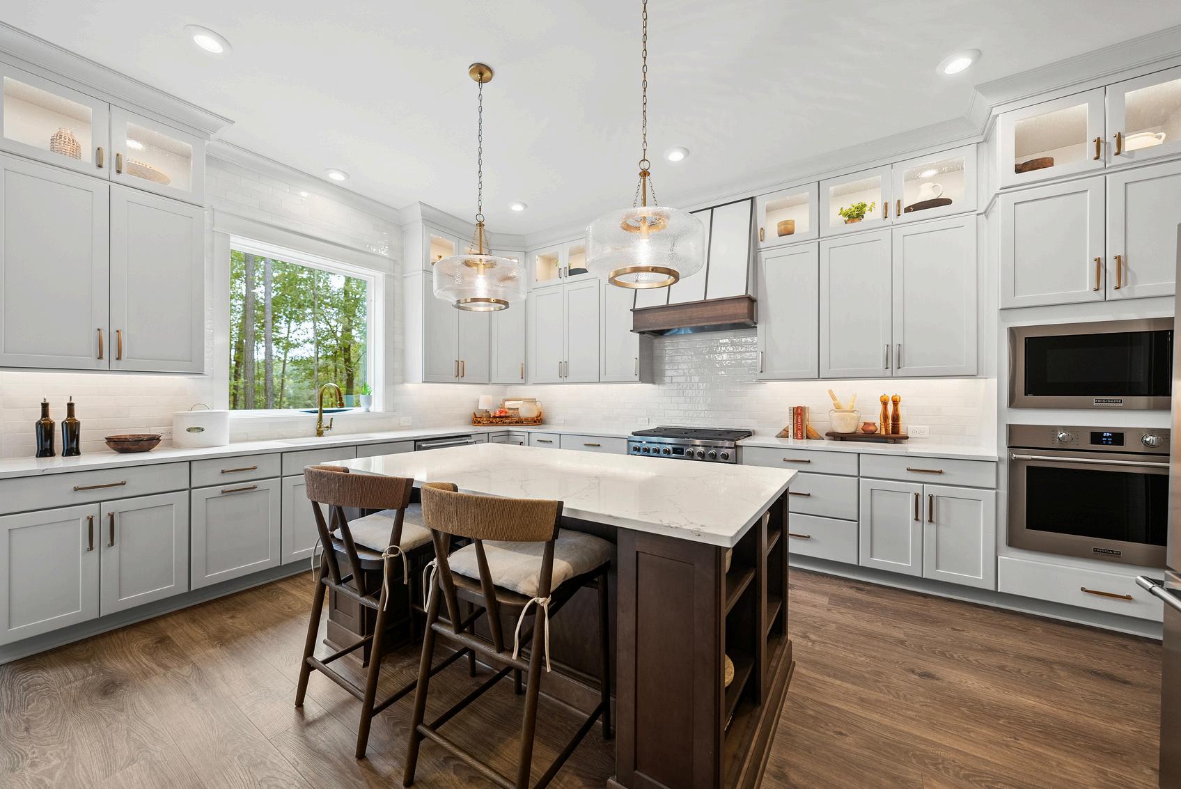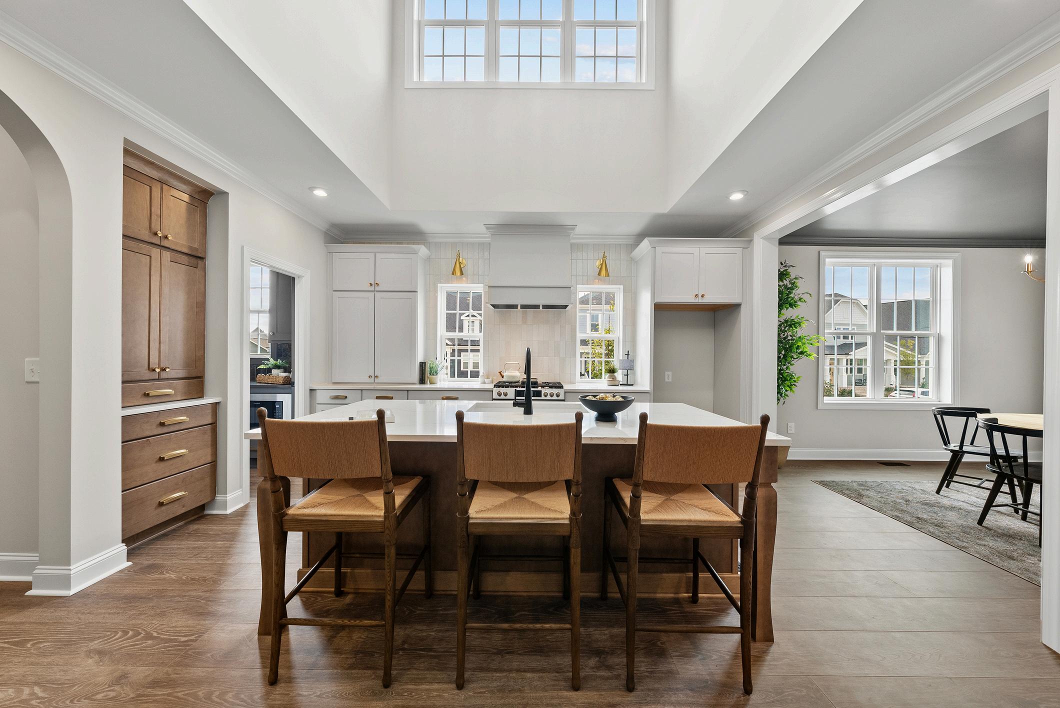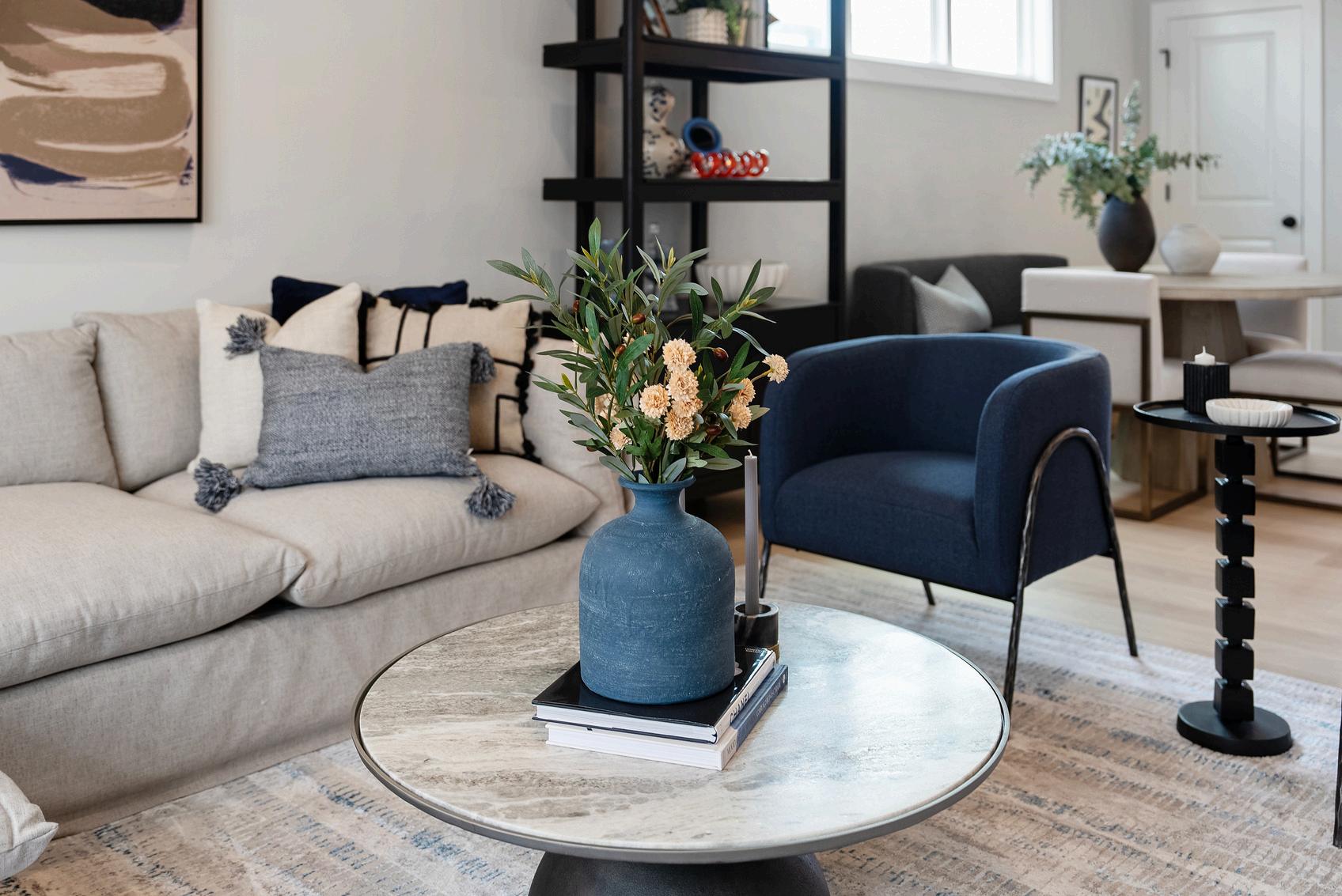 Axis is a modern sanctuary that embodies balance, blending sleek design with the quiet rhythm of the natural world. Its open layout flows with ease, uniting the kitchen, dining, and family room into one harmonious gathering space. Cool tones, layered textures, and subtle blue accents create a serene atmosphere, elevated by mixed metals and refined details.