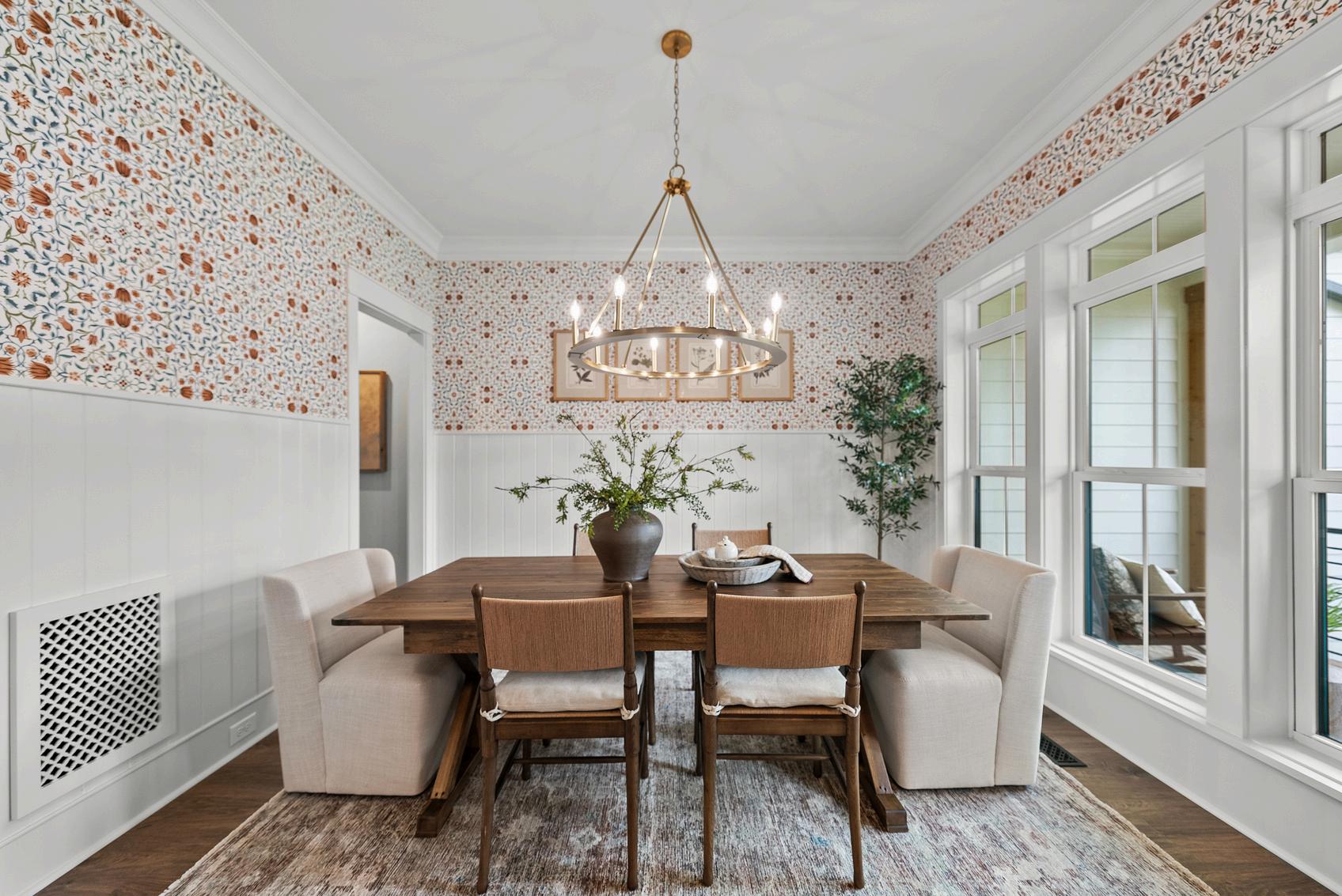 Spill the Tea is a home inspired by connection, designed for moments of laughter and conversation shared with family and friends. From the start, Designer Turner Hairr envisioned close friends gathering around the kitchen island or relaxing on the screened porch, filling each other in on their weeks. That sense of warmth and camaraderie is woven into the very character of the home The two-story foyer sets the stage with a welcoming presence, while soft arched doorways, intimate nooks, and tongue-and-groove accents create a rhythm of comfort and charm throughout.