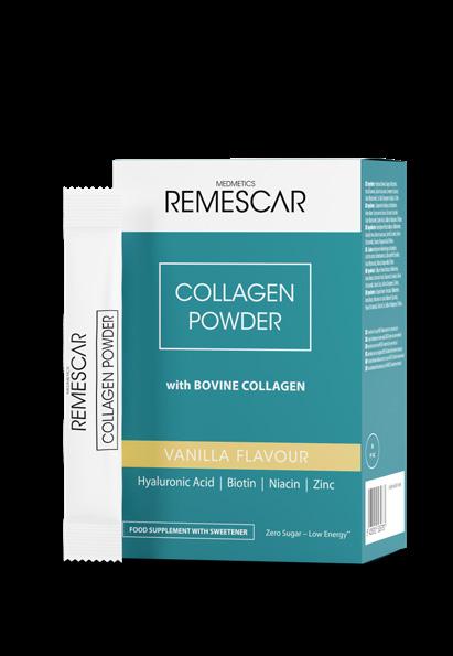 Het dagelijks innemen van collageensupplementen heeft een hoge effectiviteit en resulteert in een stralende huid. Naast de huid heeft het ook voordelen voor het lichaam. Zo worden onder andere nagels, haar, pezen en botten sterker. Collageen kan ook als antioxidant werken en zorgt voor een verbeterde spierkracht. Remescar Collageen Poeder is verkrijgbaar in twee smaken.