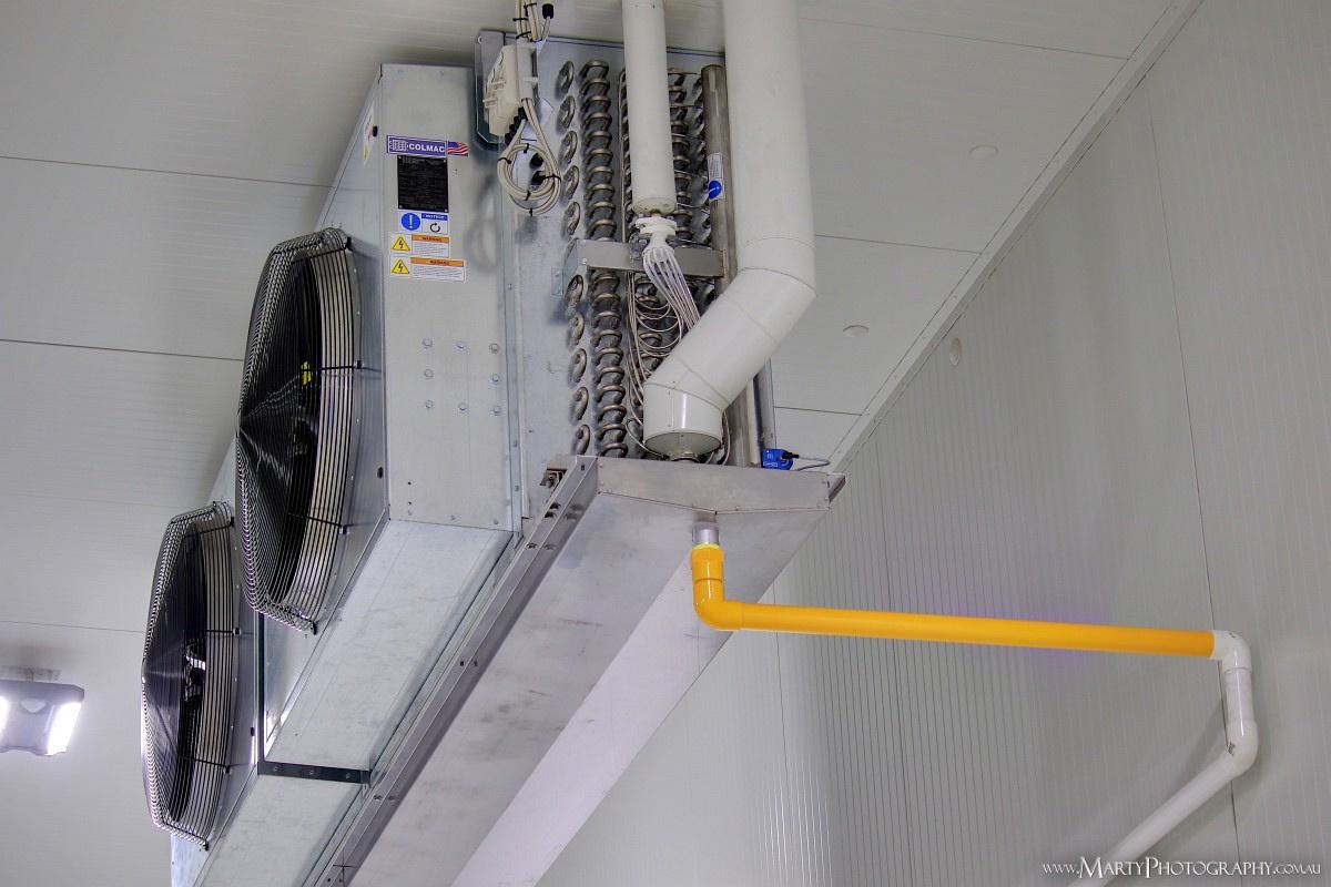 Anteroom: 2 DX evaporators, evaporating temperature 3°C/26 6°F, unit refrigeration capacity approx. 58kW, refrigerant operating charge 4.4kg/9lb per evaporator.