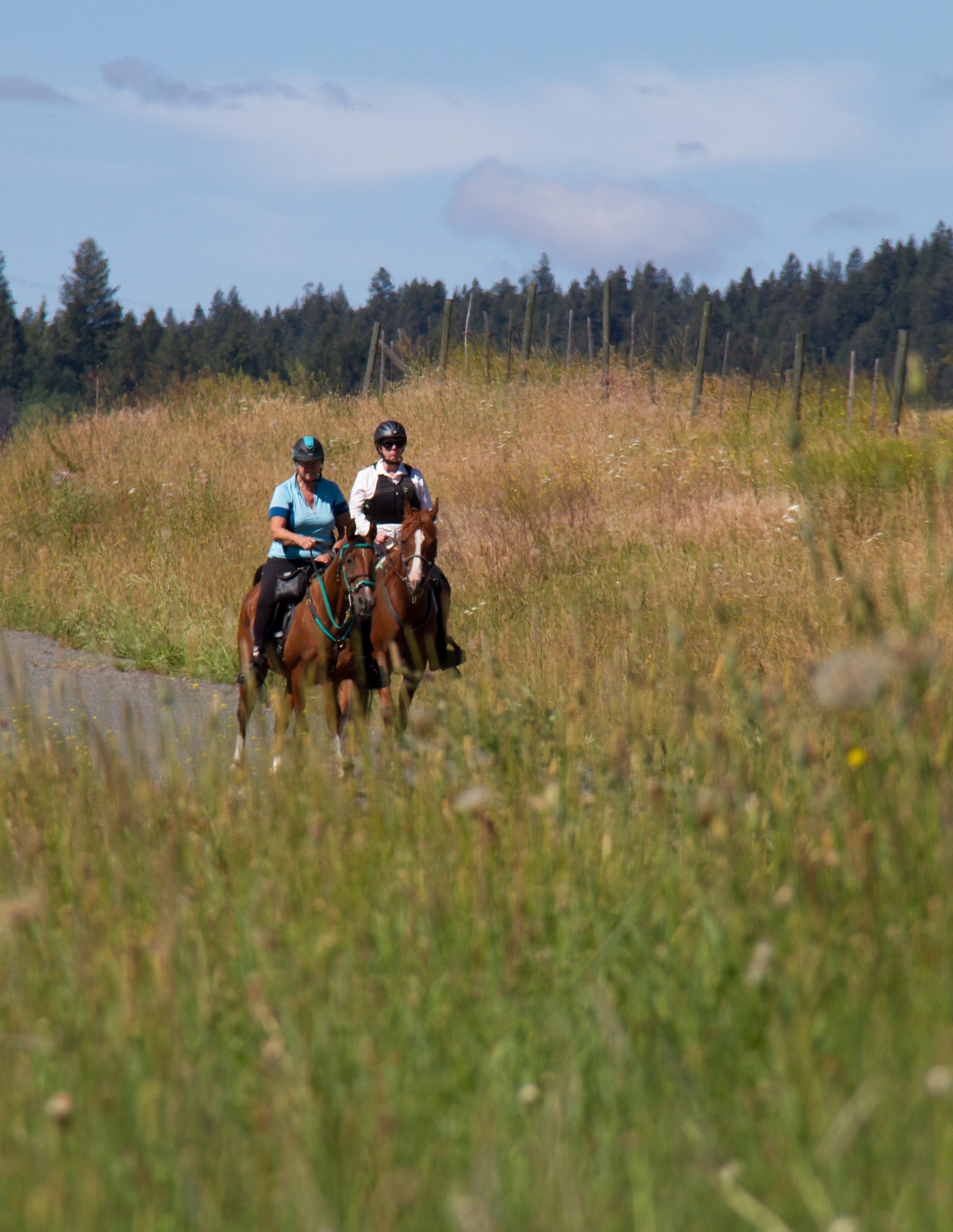 Invasive species are a cause of concern when it comes to maintaining a healthy ecosystem but from the research available it shows that horses don’t pose a significant risk in spreading invasive species on trails. Horse manure can contain seeds of invasive plants; however, they are only going to cause a problem if the seed is able to germinate, compete with native plants and grow into a plant that produces more seed. A study by Stith Gower states “Horse hay and manure can contain seeds of non-native plant species; however, success of germinating and becoming established on active horse trails in forest ecosystems in the eastern USA is extremely low.”. Some places we take our horses might pose a higher risk for spreading invasive species and in that case buying weed free hay would be a good option. The Alberta Invasive Species Council has a Certified Weed Free Forage Program and a list of producers where you can buy weed free hay. Unfortunately, on the North American Invasive Species Management Association website BC is not listed as having a weed free forage program.