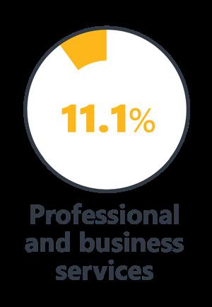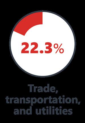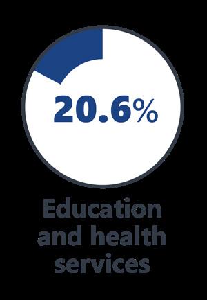 FASTEST GROWING INDUSTRIES (2010-2019) PROFESSIONAL AND BUSINESS SERVICES JOBS ADDED 2,202 EDUCATION AND HEALTH SERVICES 1,895 TRADE, TRANSPORTATION, AND UTILITIES 1,433 CONSTRUCTION 1,278 MANUFACTURING 1,074 Bureau of Labor Statistics