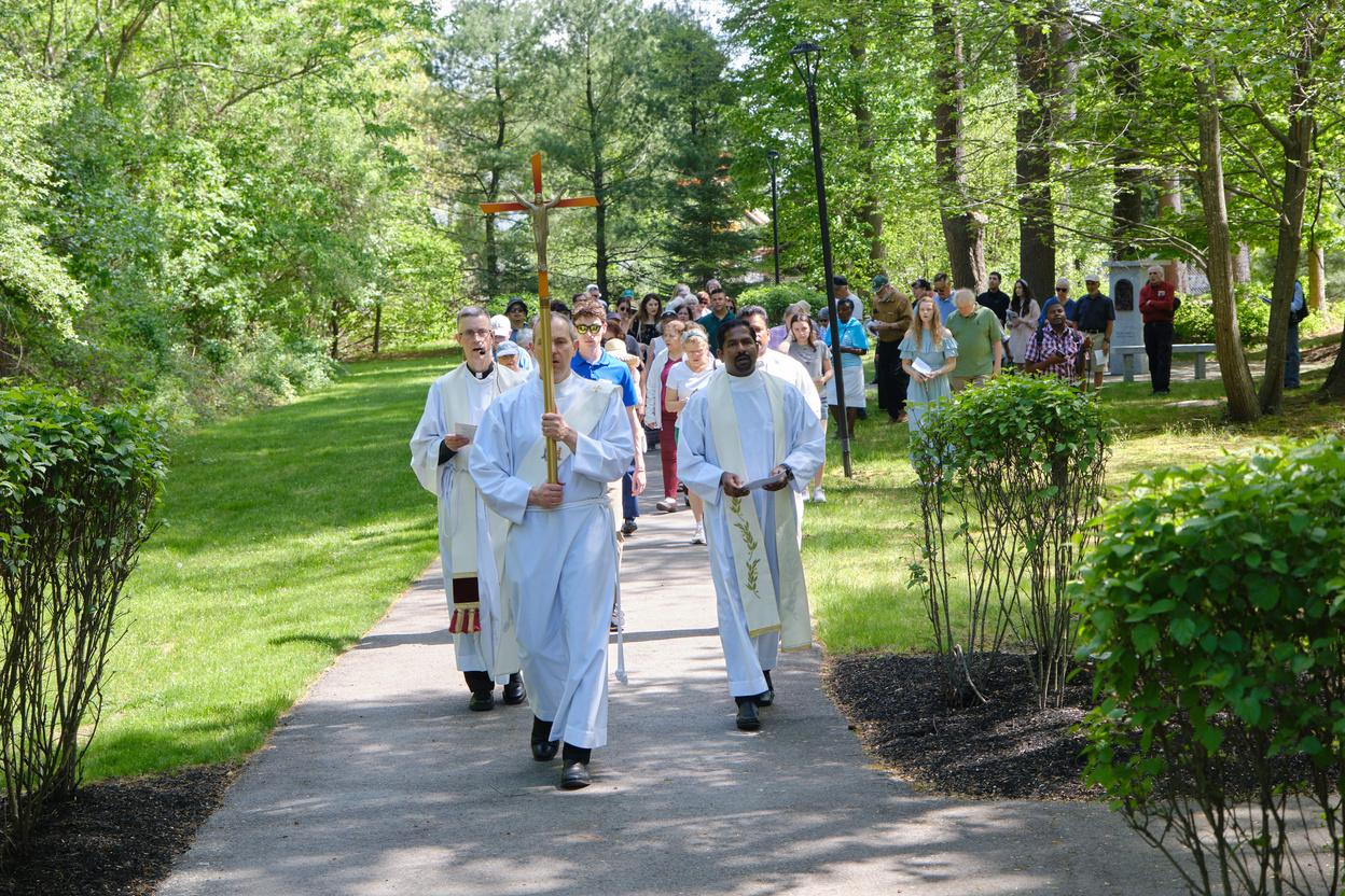Families praying in a Rosary procession at The Father Peyton Center in North Easton, MA