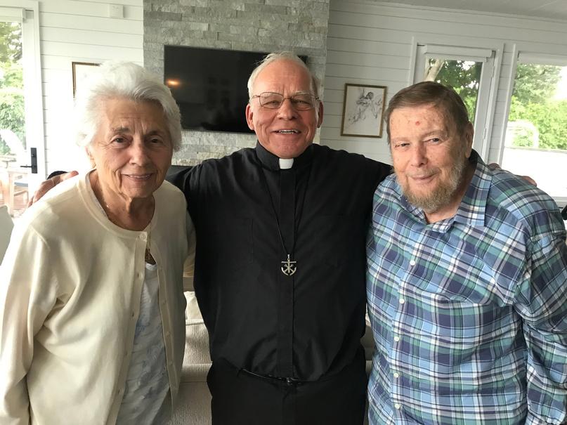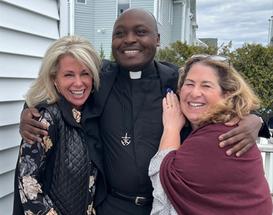 RIGHT: Nannette Hendel, Father Fred Jenga, C S C , and Nannette’s friend, Martine Ozycz