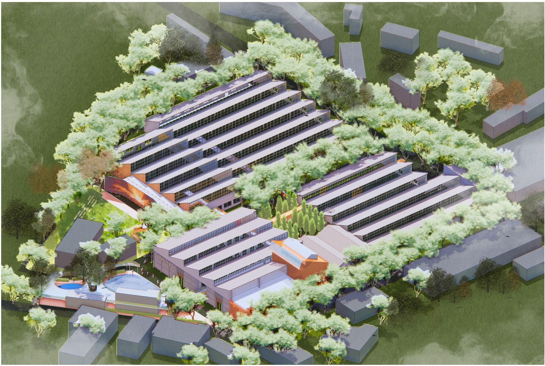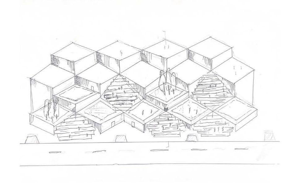 For this project, I was primarily involved in the early design phase, contributing through hand-drawn massing studies, SketchUp modeling, and Enscape rendering.