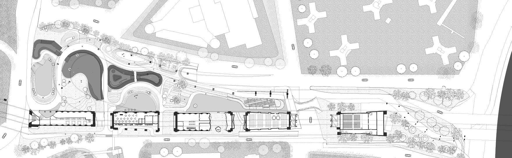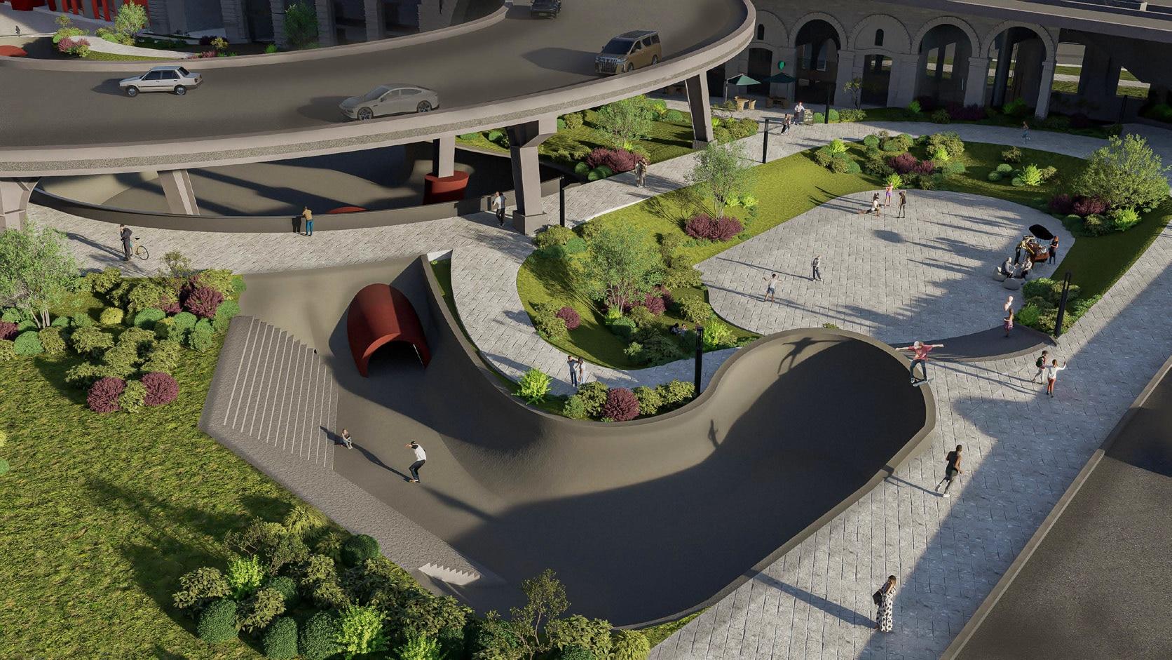 The design is driven by the community’s daily activities and needs, incorporating features such as a skate park, children’s playground, community garden, sports courts, an indoor market, and open plazas for temporary events or gatherings. These elements are carefully arranged along landscape pathways that serve as boundaries, organizing the space while promoting seamless integration. Inspired by a puzzle-like approach, the design allows each program to fit together cohesively, enabling multiple activities to take place simultaneously without disruption.