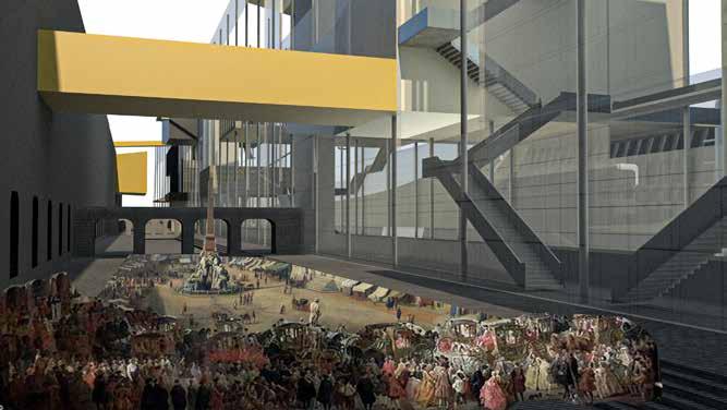 We envision the piazza as a stage—a space where people gather, encounter one another, perform rituals, and celebrate. Inspired by Antonio Joli’s View of the Flooded Piazza Navona, we draw parallels between the theatricality of the painting and the design of our own space. Like the painting, the piazza we create becomes a dynamic platform for public life, inviting occupation, transformation, and reinterpretation.