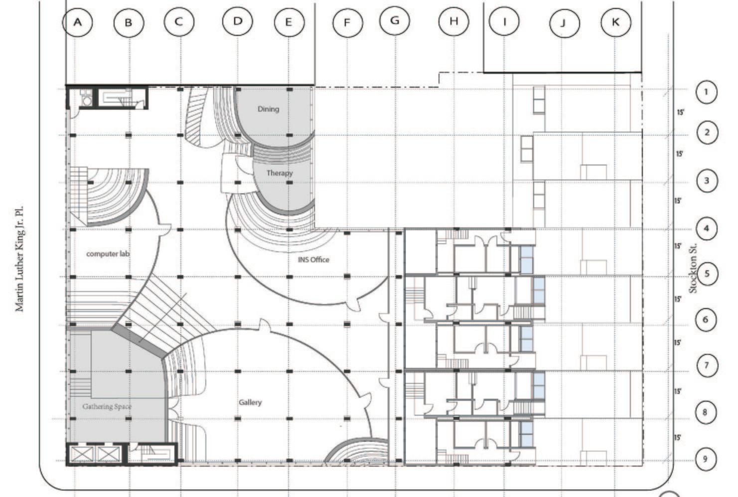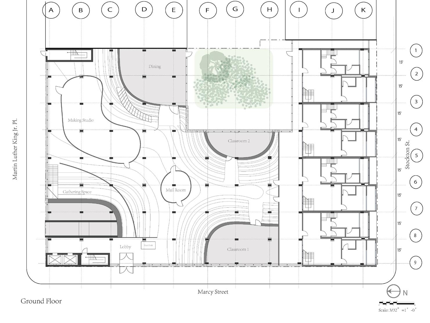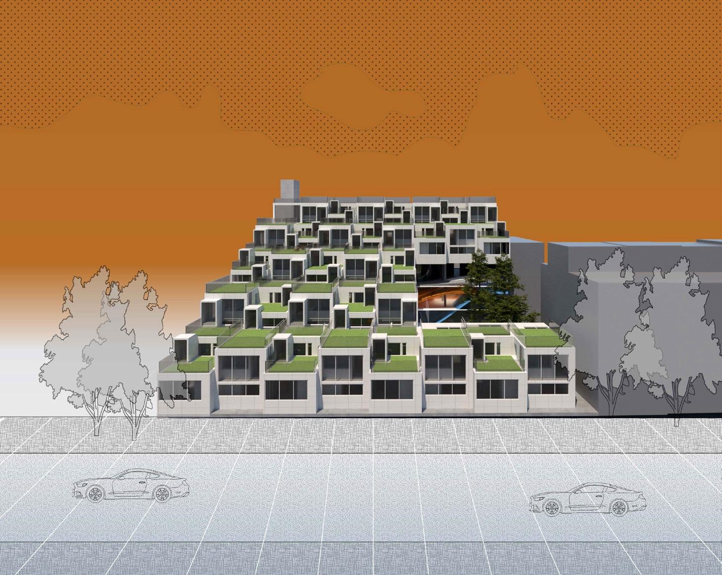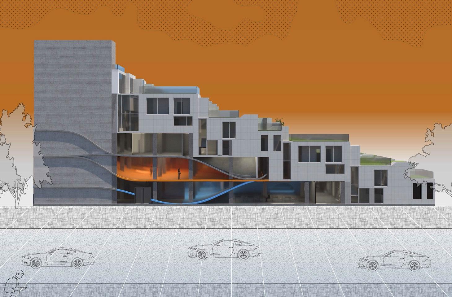The project envisions a community apartment complex aimed at providing private, adaptable, and inclusive housing for new refugees in New York City. The design focuses on fostering a sense of belonging and support by integrating diverse living spaces, shared communal areas, and opportunities for social interaction. Apartments vary in size and layout to accommodate individuals and families, with features like private gardens and flexible interiors to suit different needs. The building’s lower levels serve as layered public landscapes, offering spaces for gathering, recreation, and quiet reflection—creating a seamless blend of privacy and community. This design not only addresses the immediate need for shelter but also cultivates a supportive environment for new beginnings.